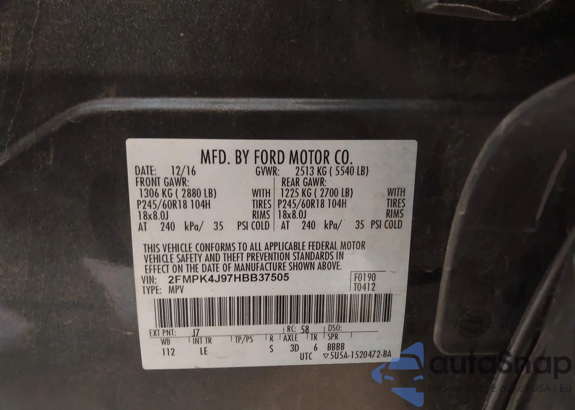 • VIN 2FMPK4J97HBB37505