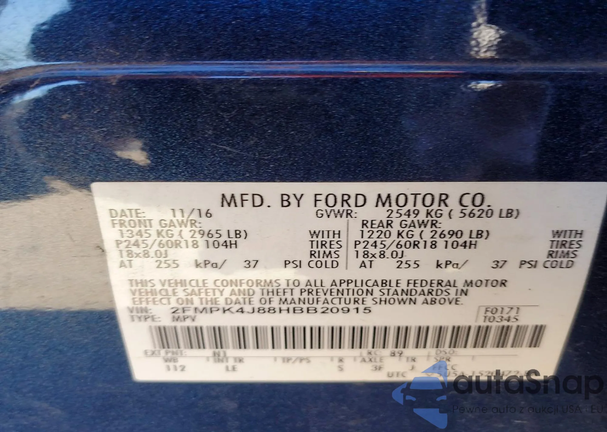 • VIN 2FMPK4J88HBB20915