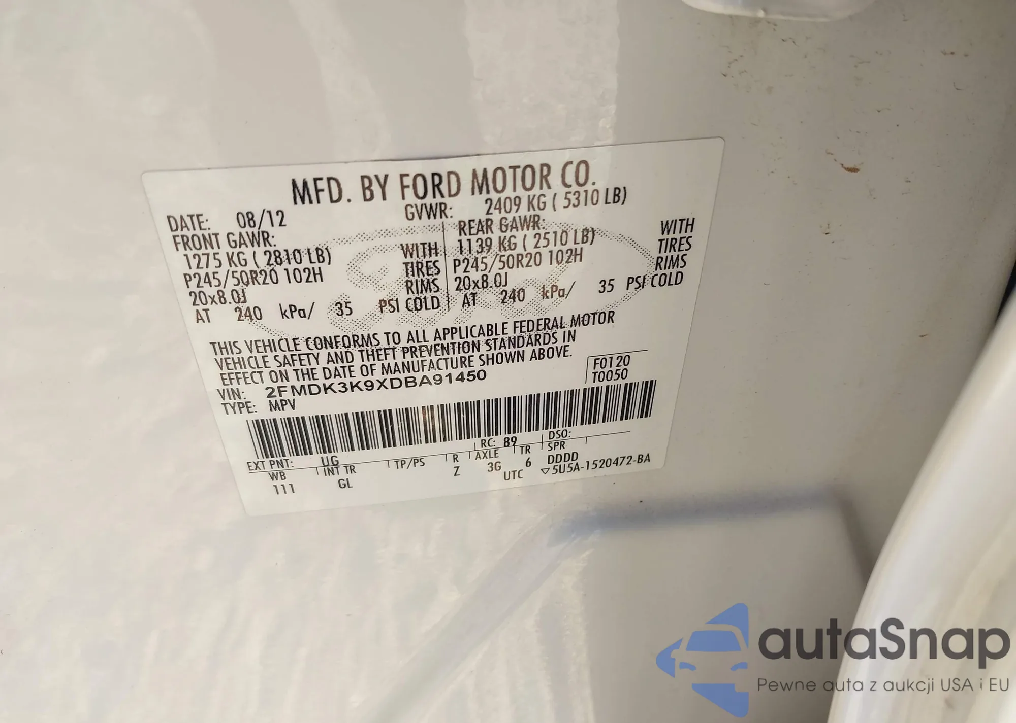 • VIN 2FMDK3K9XDBA91450