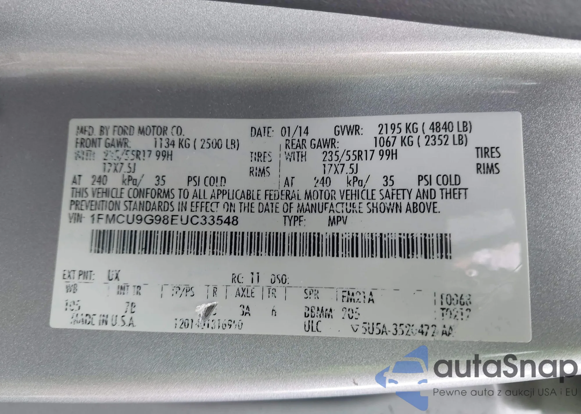 • VIN 1FMCU9G98EUC33548