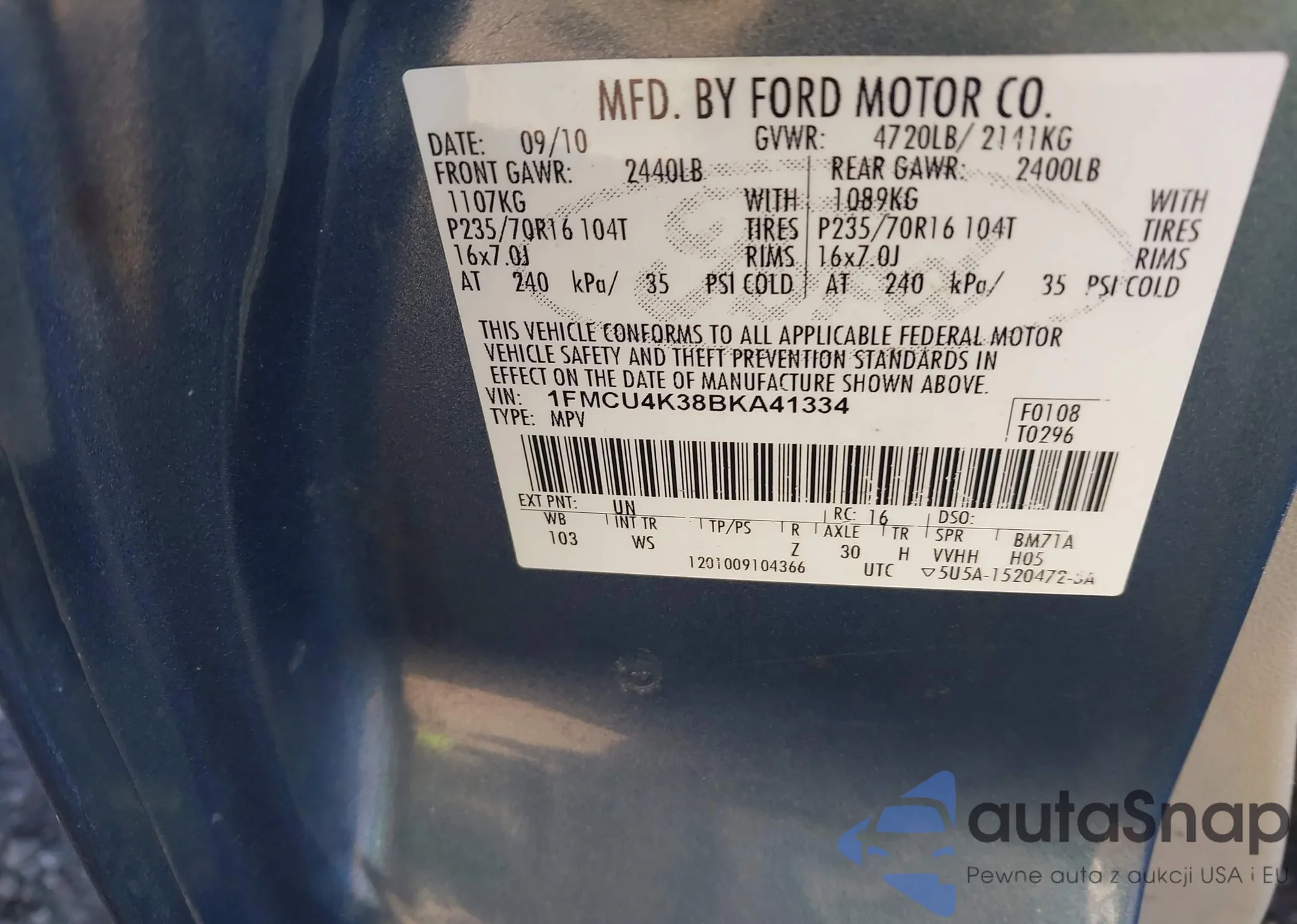 • VIN 1FMCU4K38BKA41334