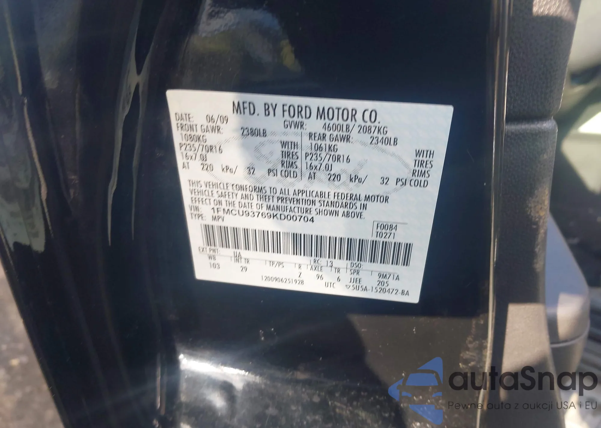 LOT: 44152416 VIN: 1FMCU93769KD00704