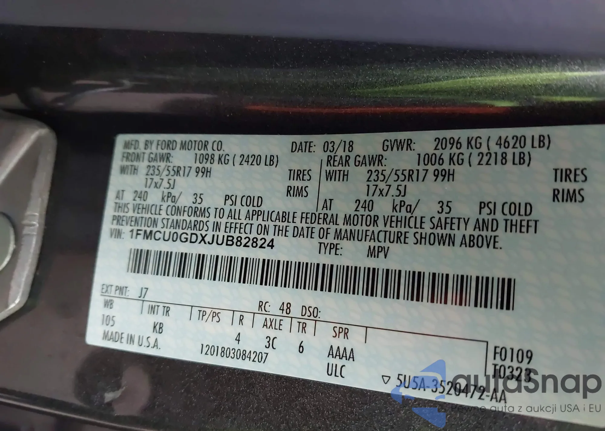 • VIN 1FMCU9GD7JUA39933