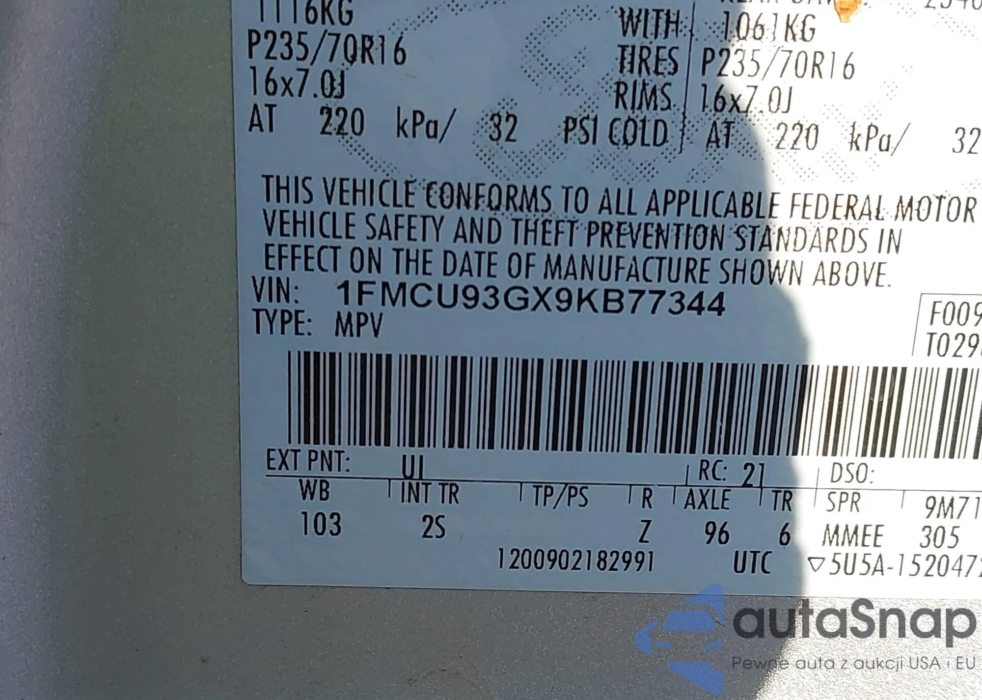 • VIN 1FMCU93GX9KB77344