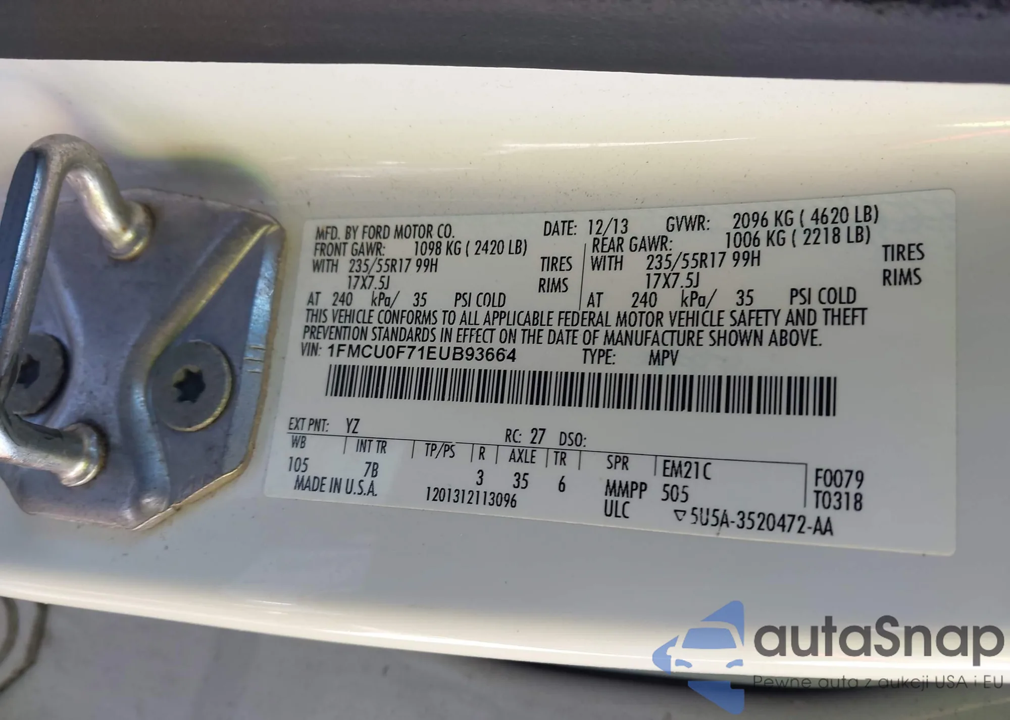 LOT: 44303051 VIN: 1FMCU9G92HUB00269