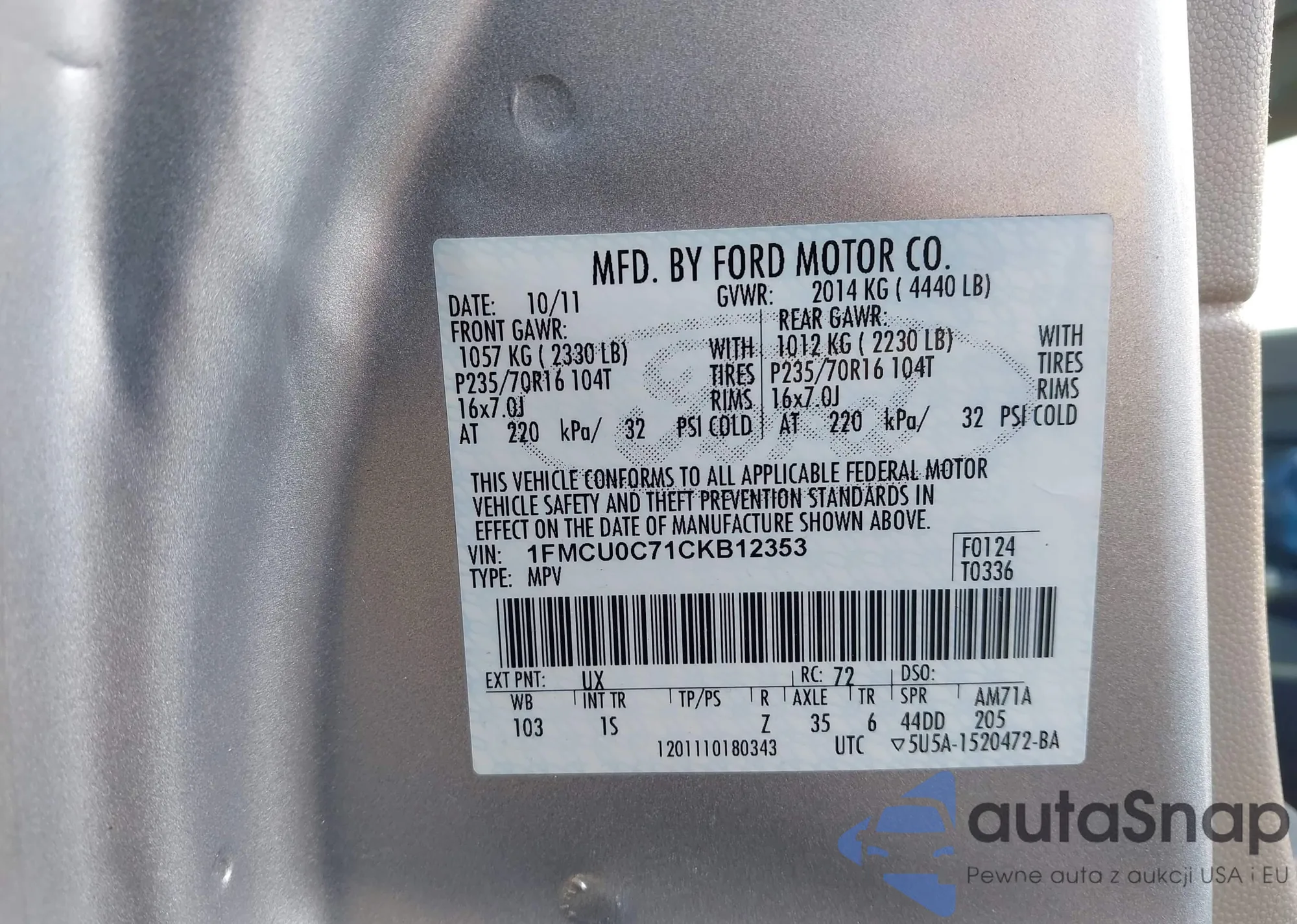 • VIN 1FMCU0C71CKB12353