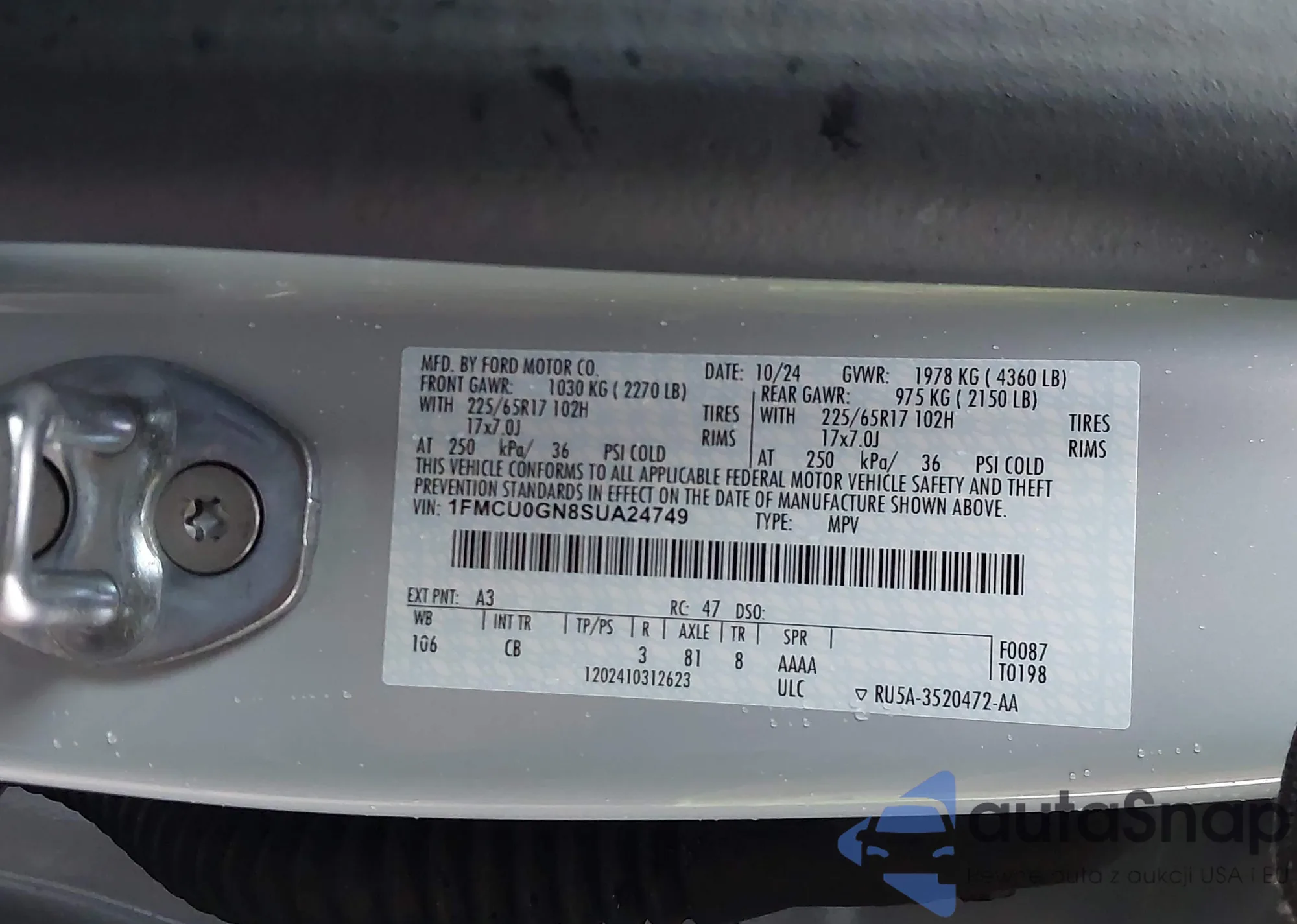 LOT: 43622553 VIN: 1FMCU0GN8SUA24749
