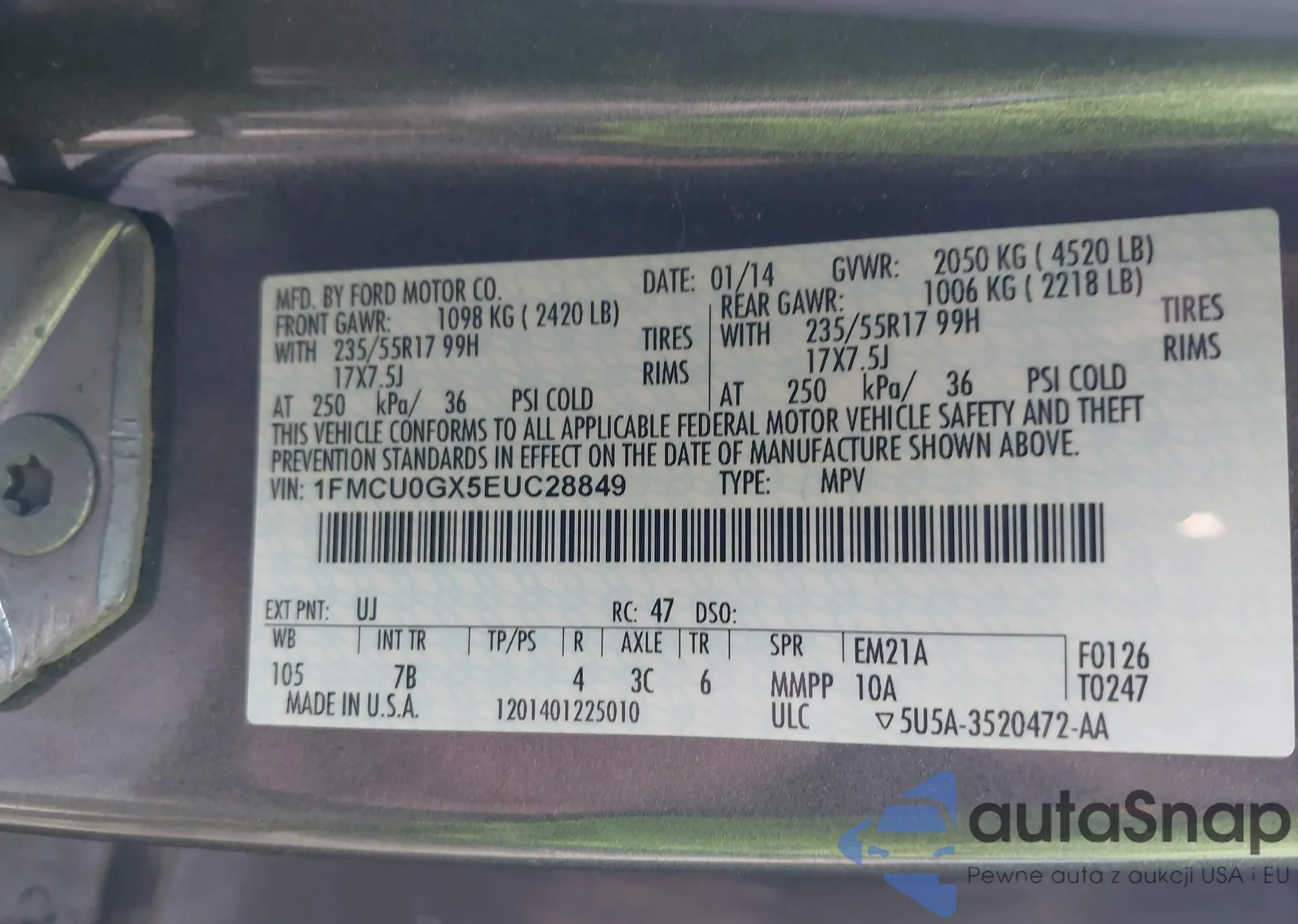 LOT: 43925450 VIN: 1FMCU0GX5EUC28849