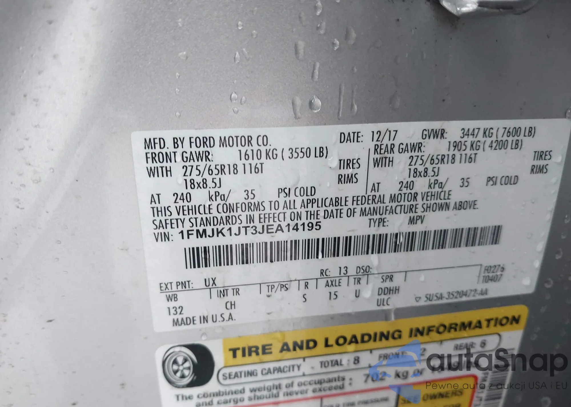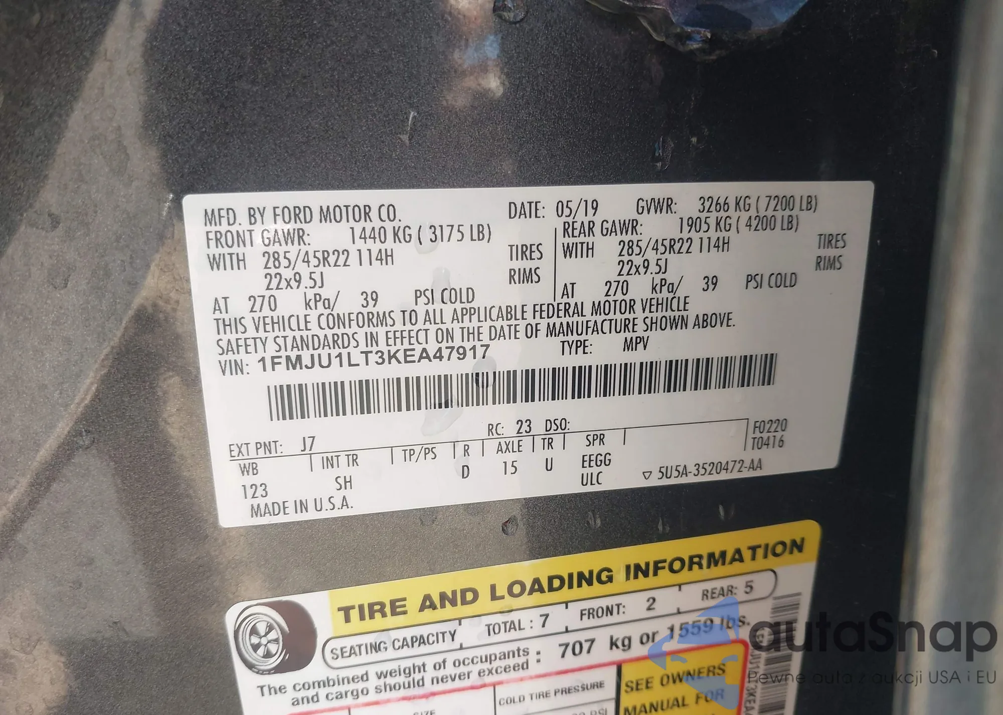 • VIN 1FMJU1LT3KEA47917