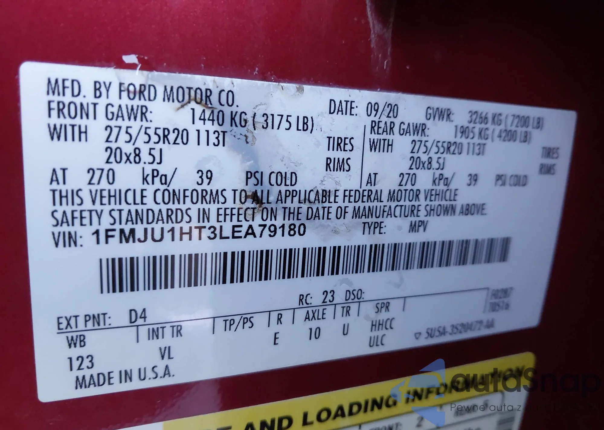 LOT: 44110005 VIN: 1FMJU1HT3LEA79180