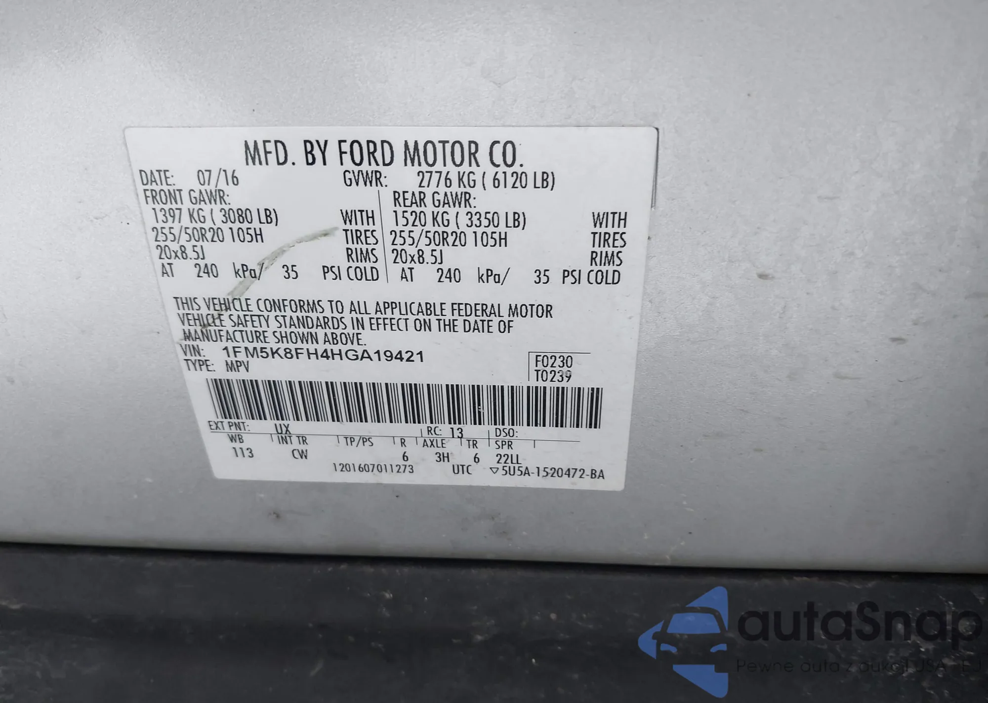 • VIN 1FM5K8GC9LGA00245
