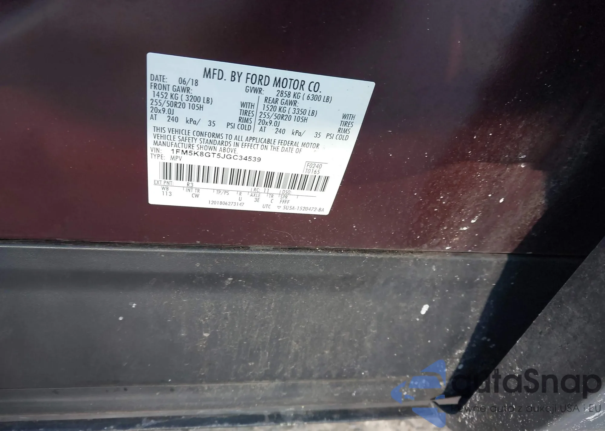 • VIN 1FM5K8GT5JGC34539