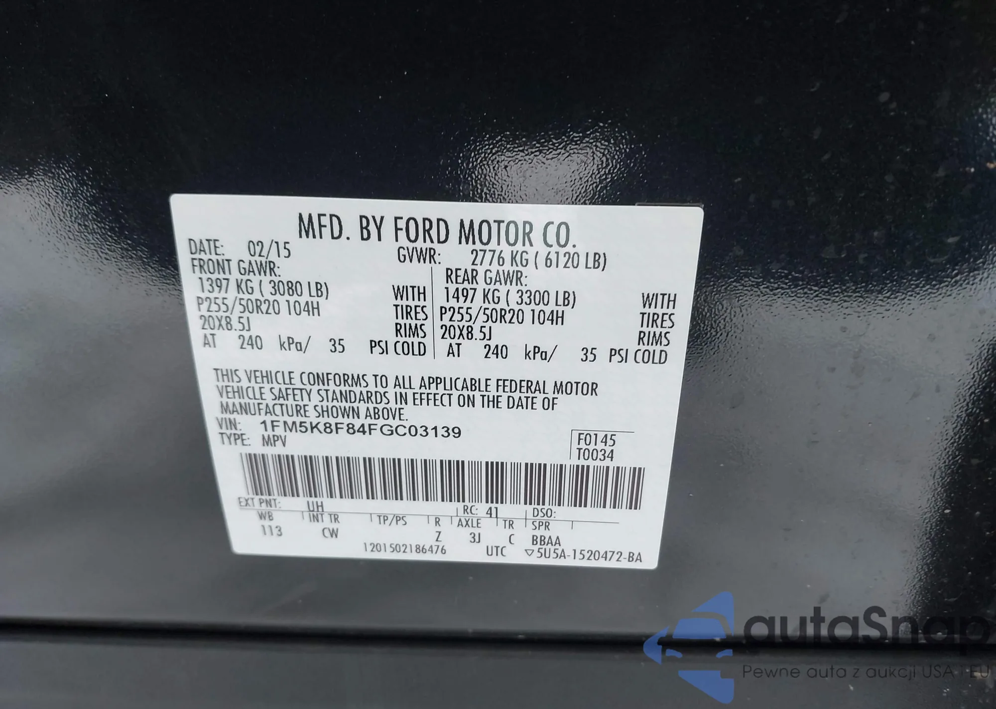 • VIN 1FM5K8F84FGC03139