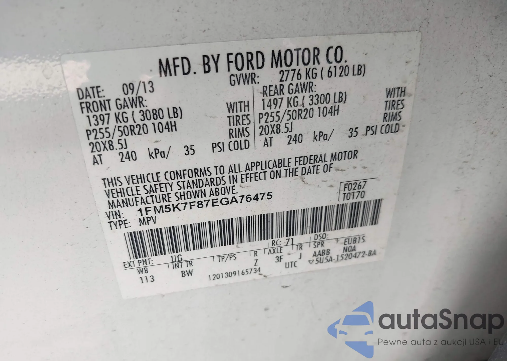 • VIN 1FM5K7F87EGA76475
