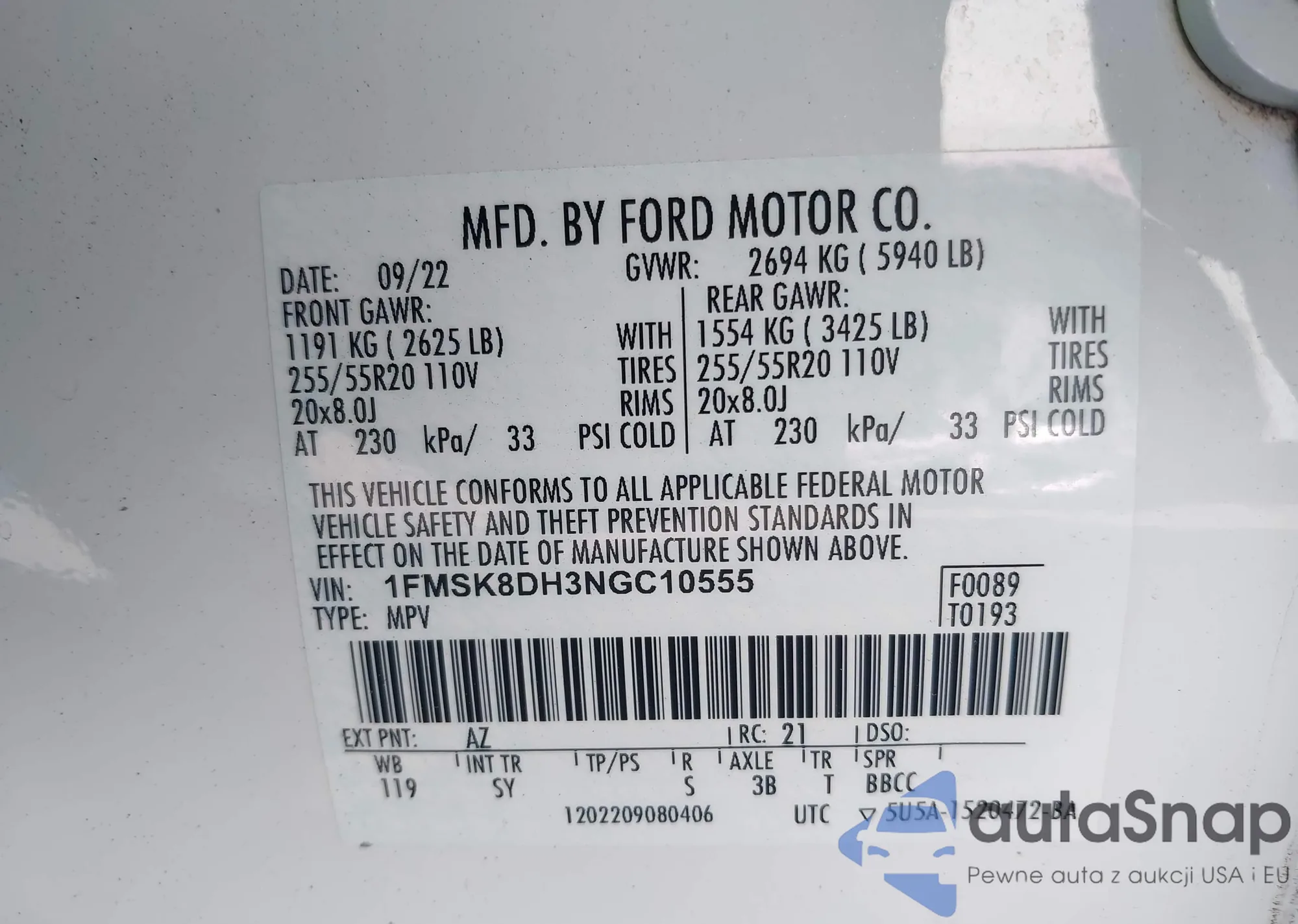 • VIN 1FMSK7FH6NGB05547