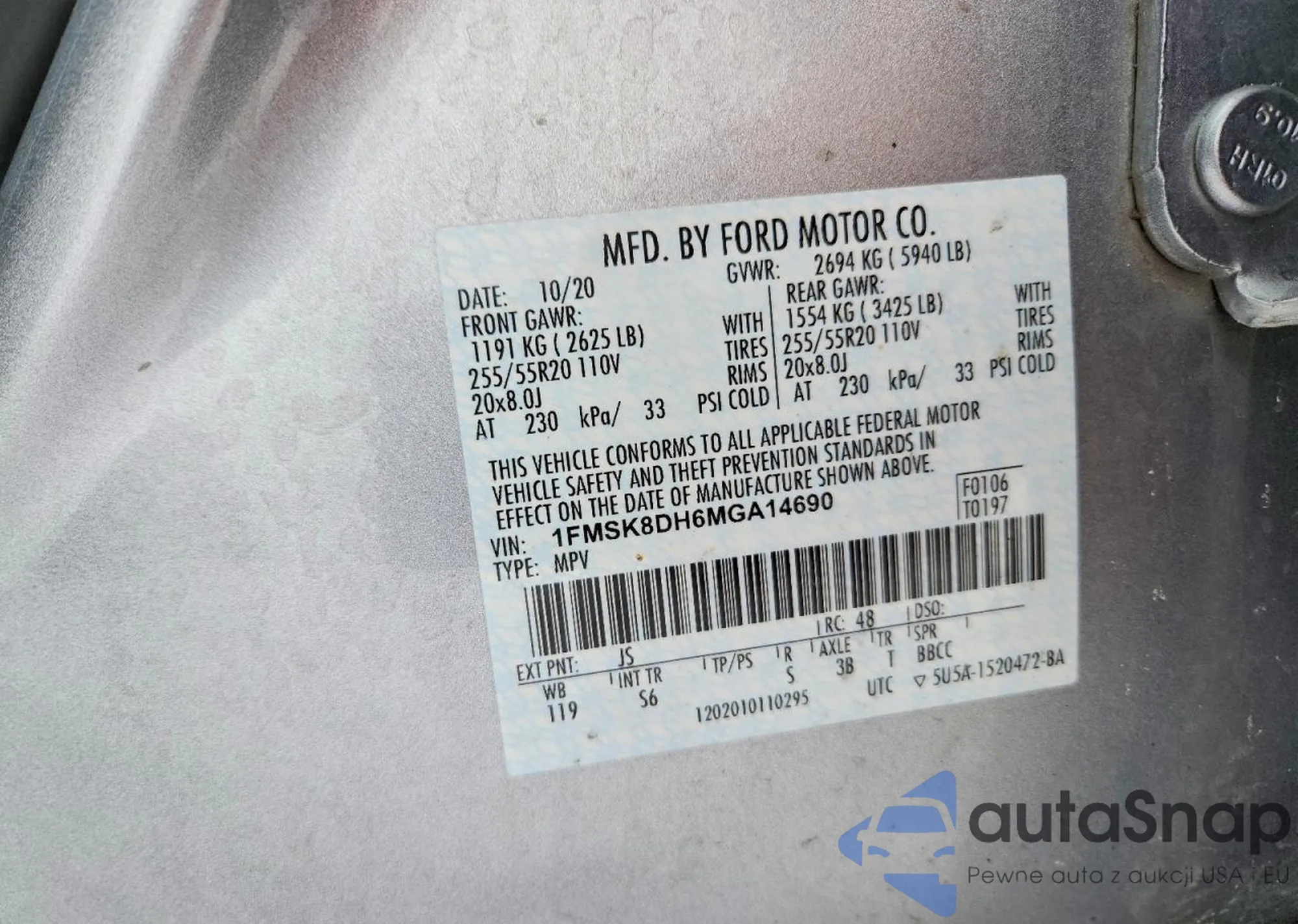 • VIN 1FMSK8DH6MGA14690