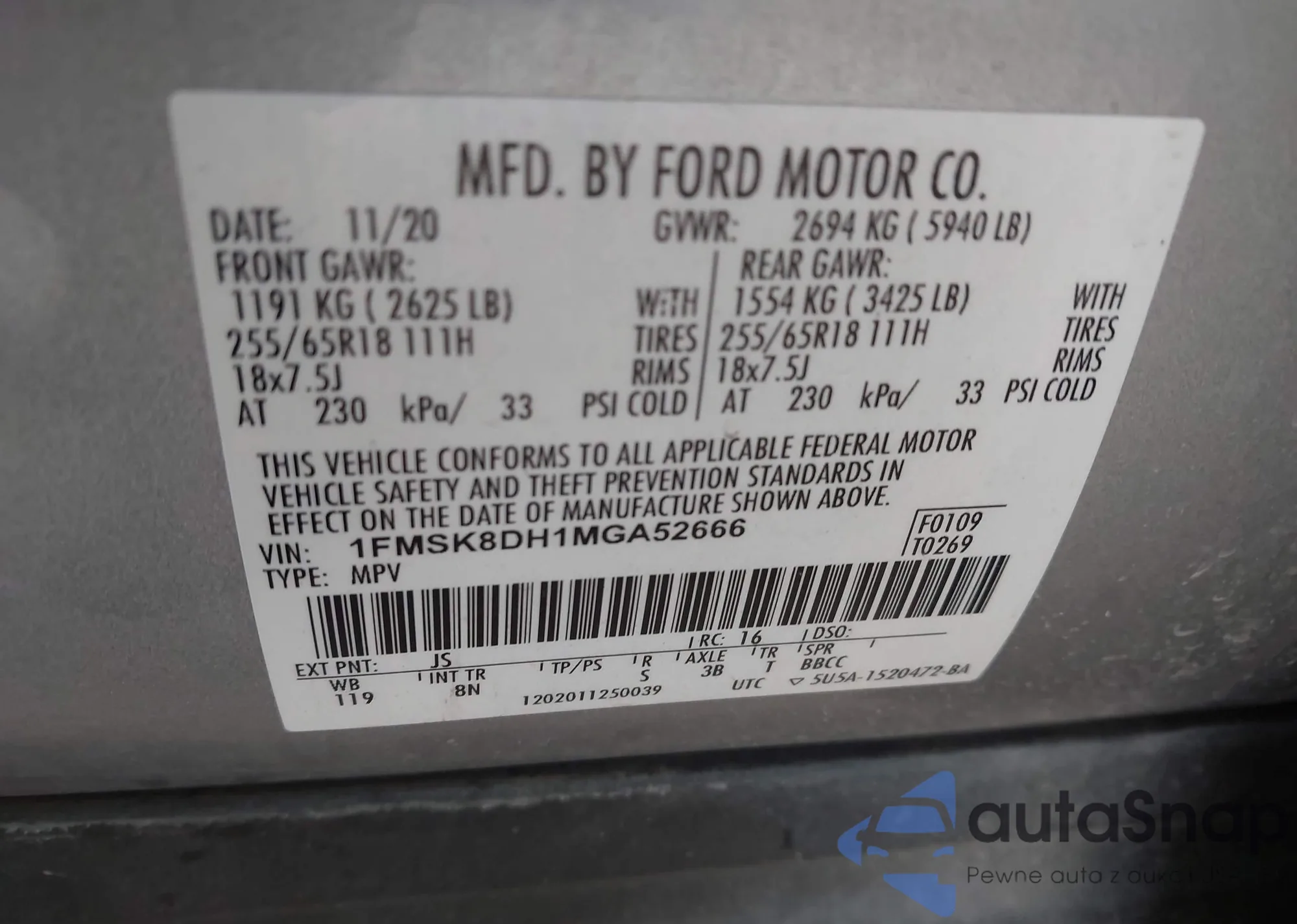 • VIN 1FMSK8DH1MGA52666