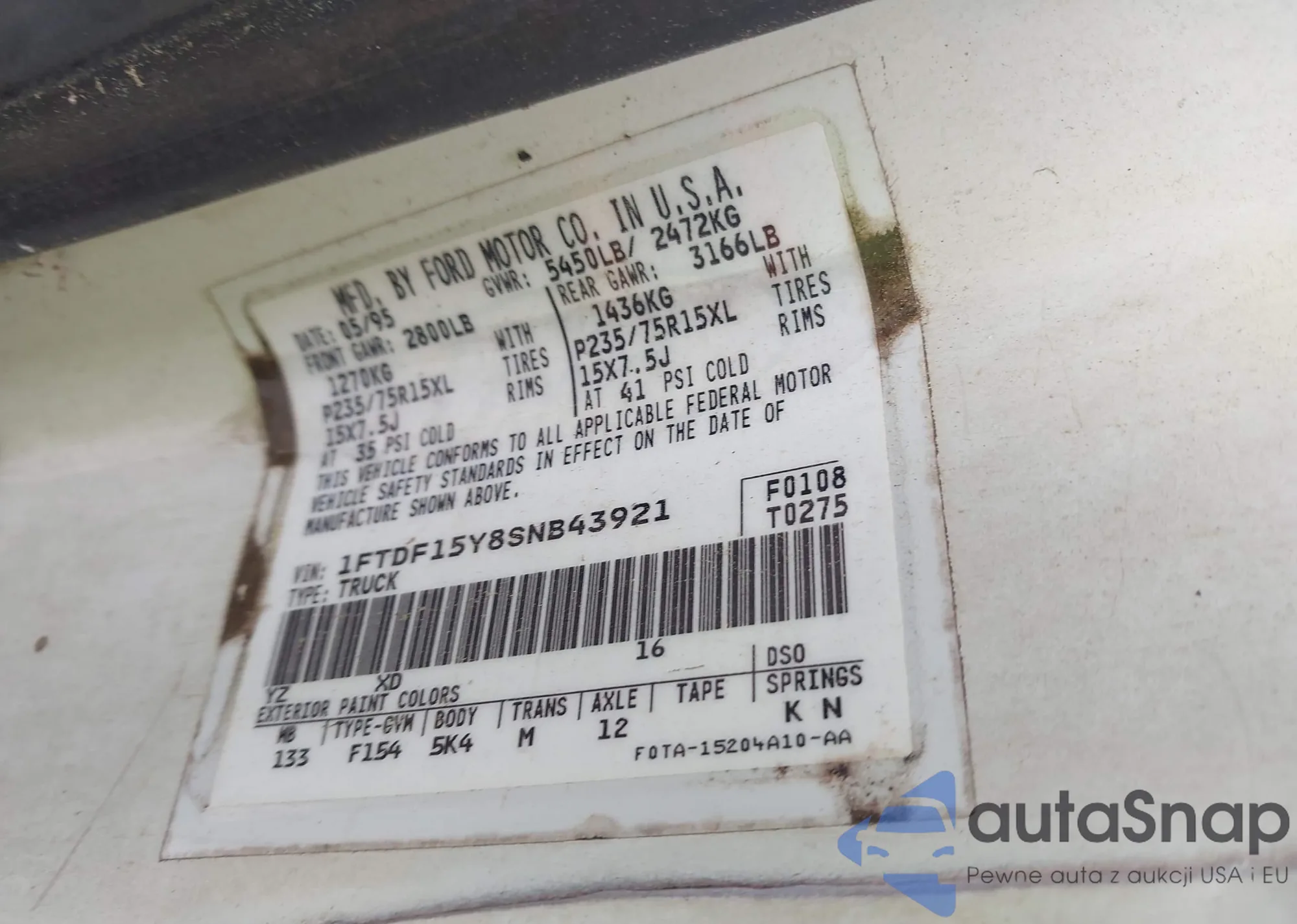 • VIN 1FTDF15Y8SNB43921