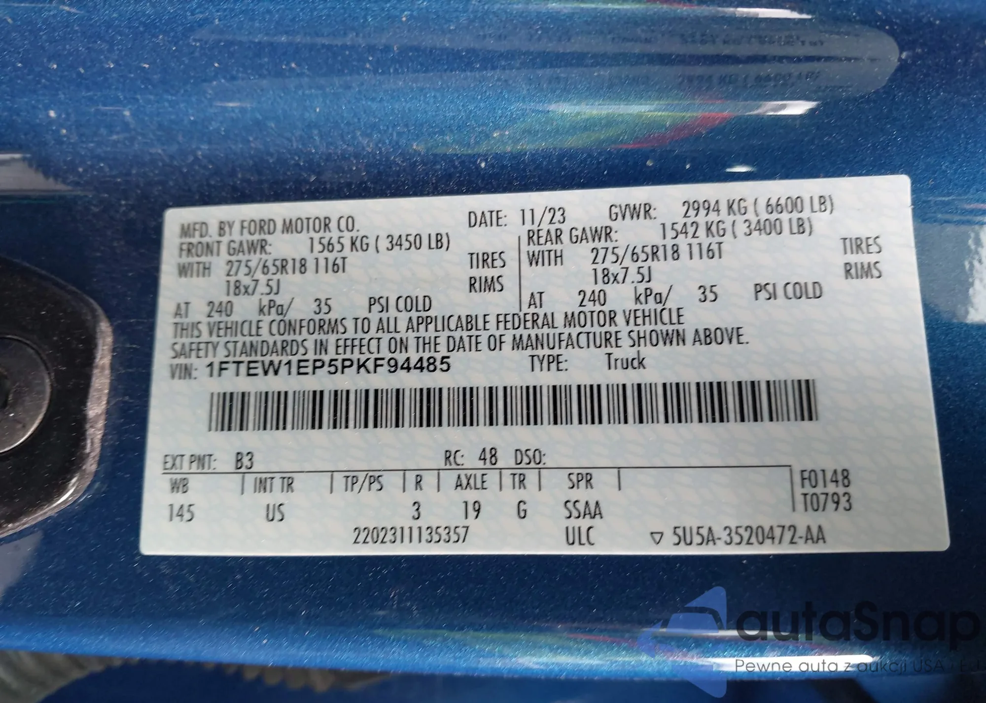 • VIN 1FTEW1EP5PKF94485