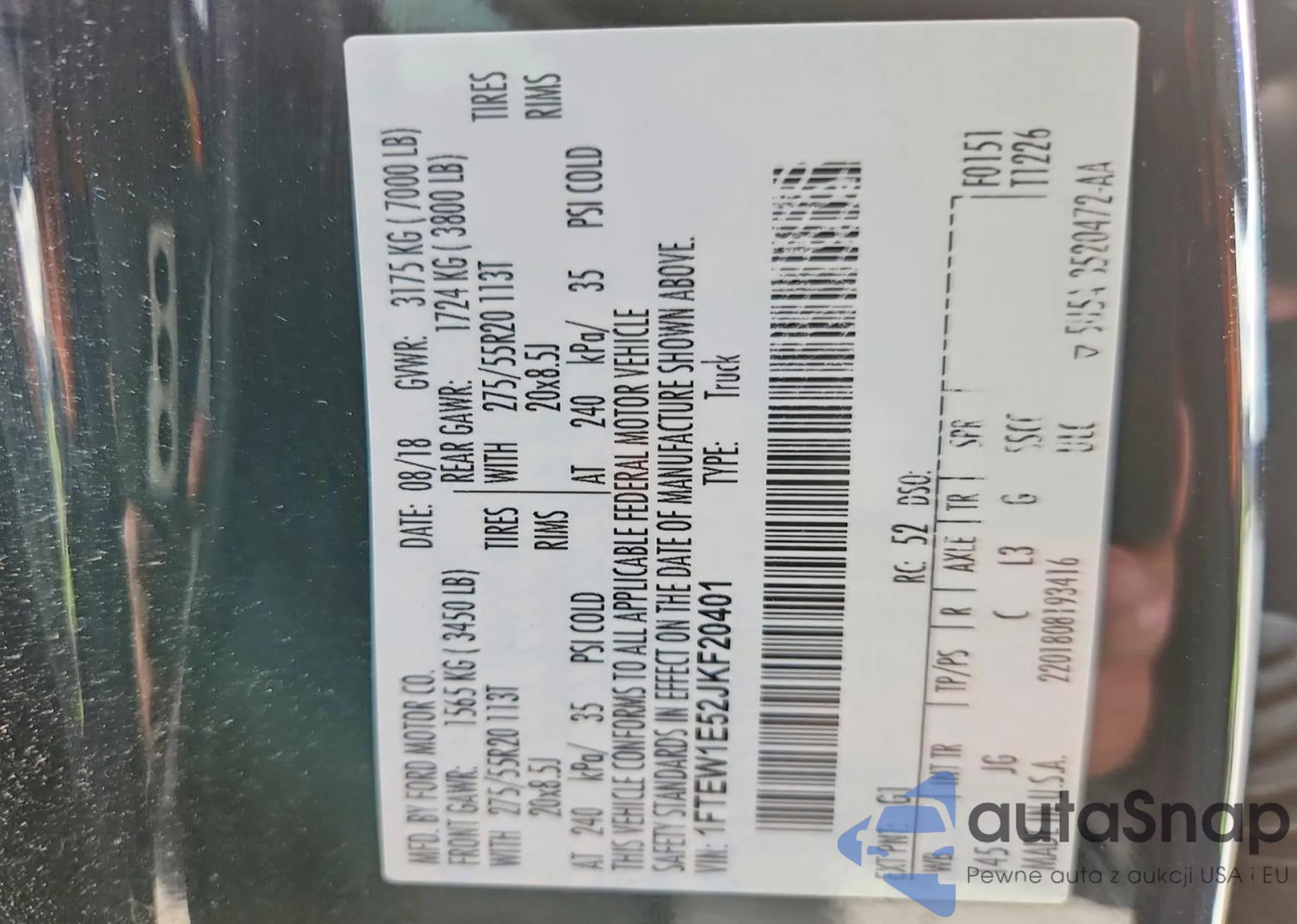 LOT: 76166975 VIN: 1FTEW1E52JKF20401