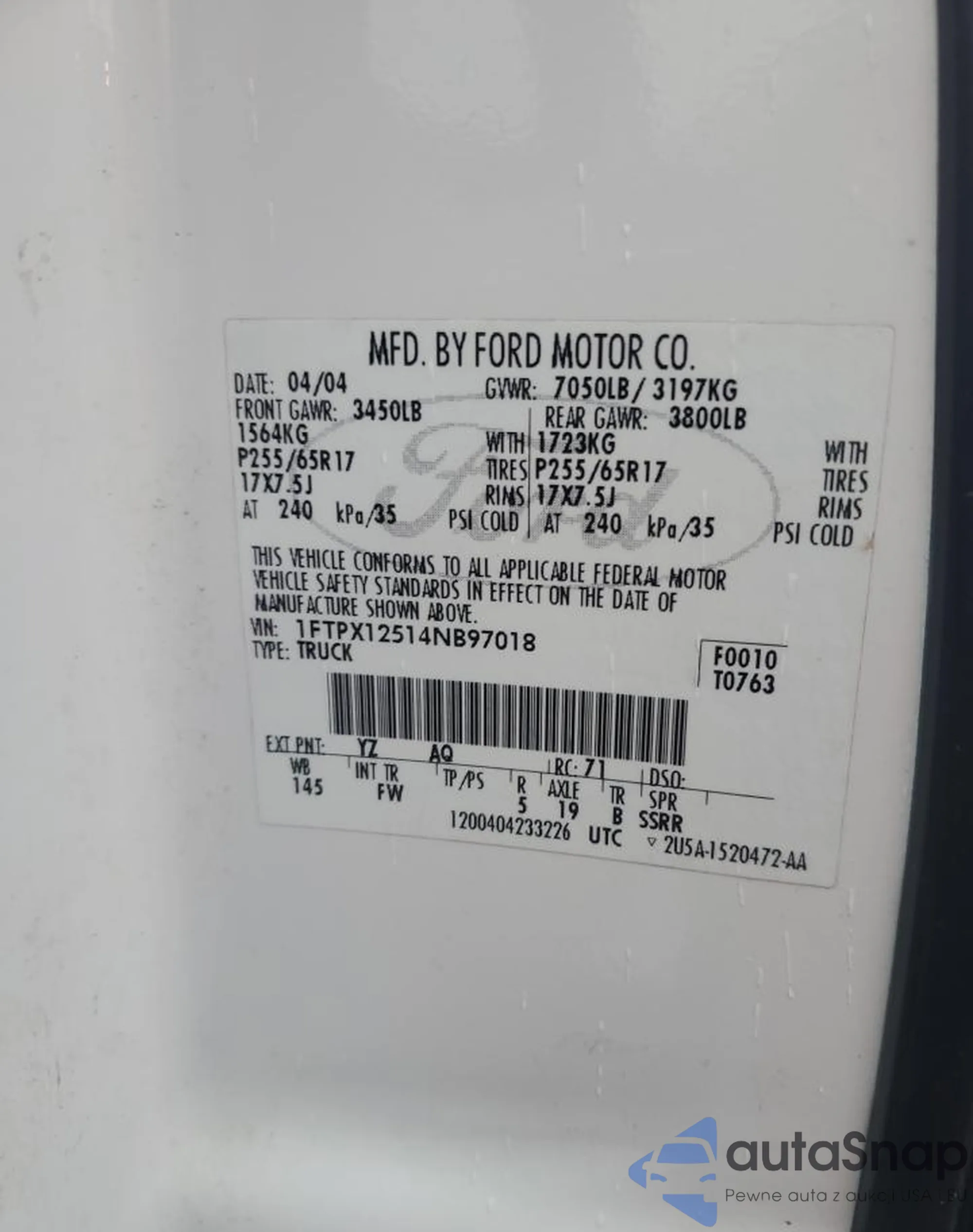 • VIN 1FTPX12514NB97018