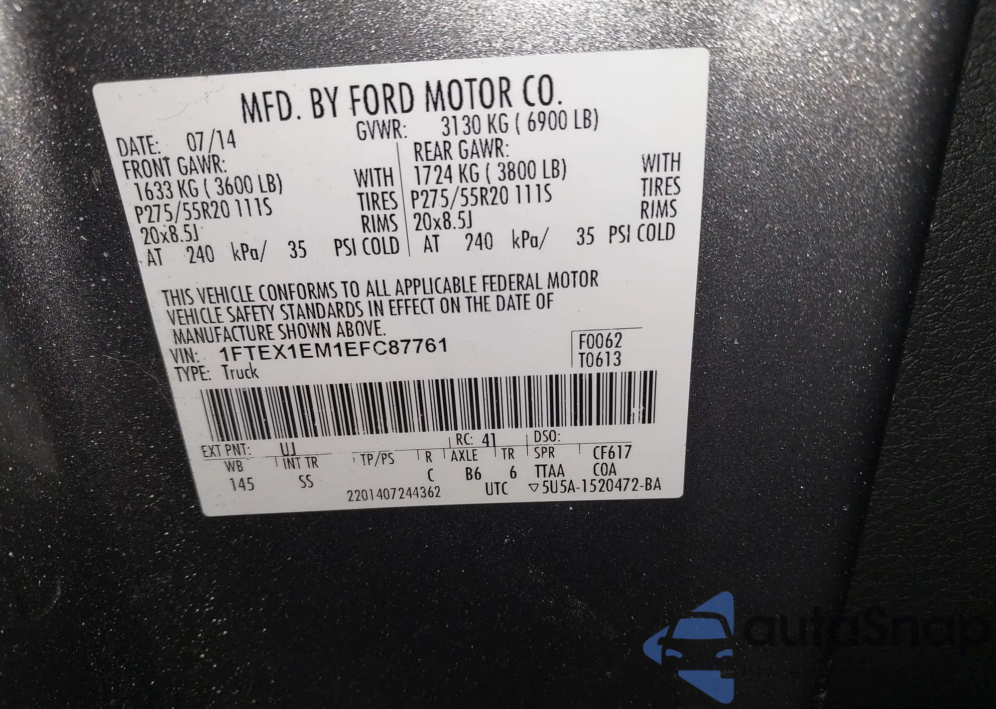 • VIN 1FTEX1EM1EFC87761