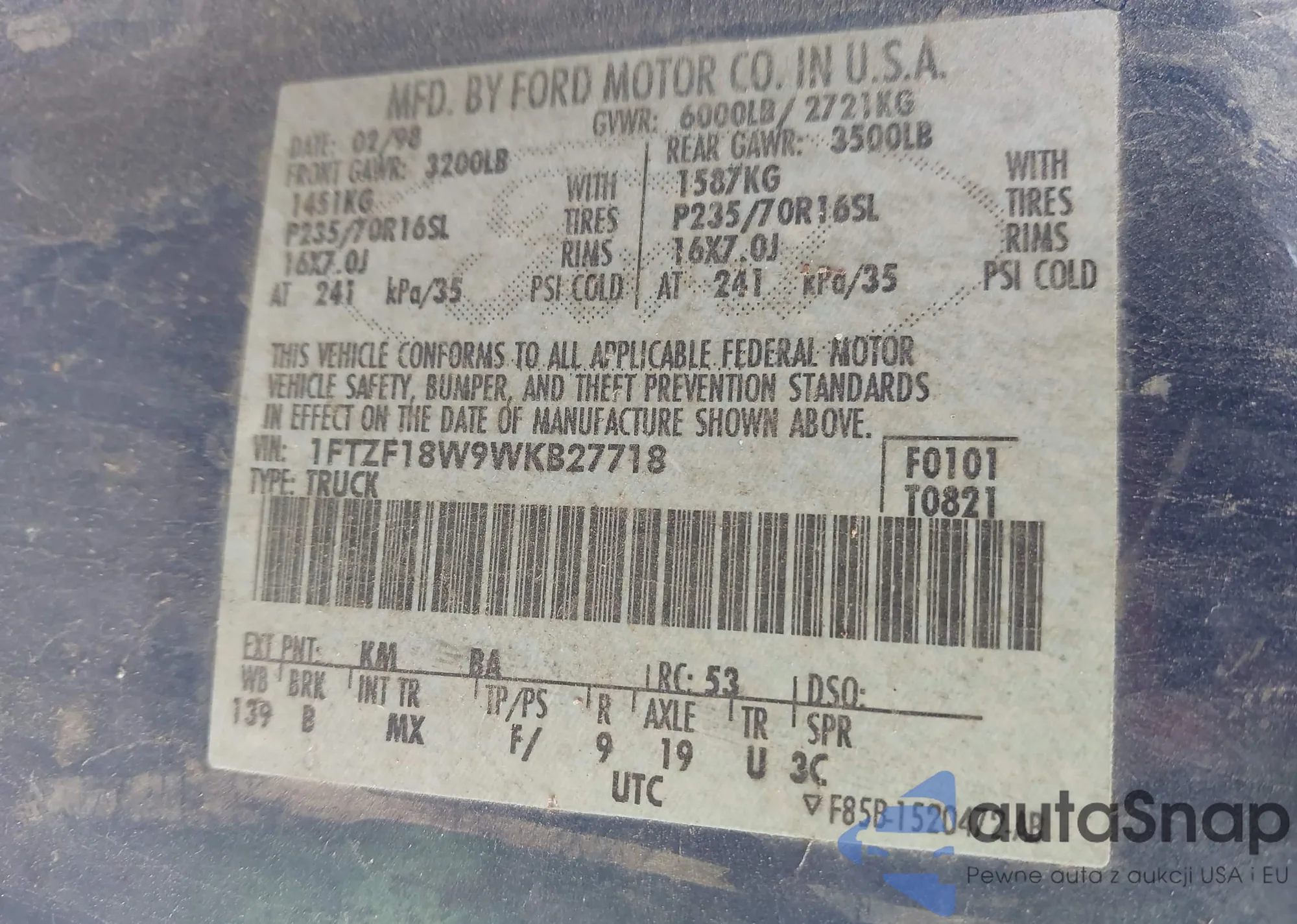 • VIN 1FTZF18W9WKB27718