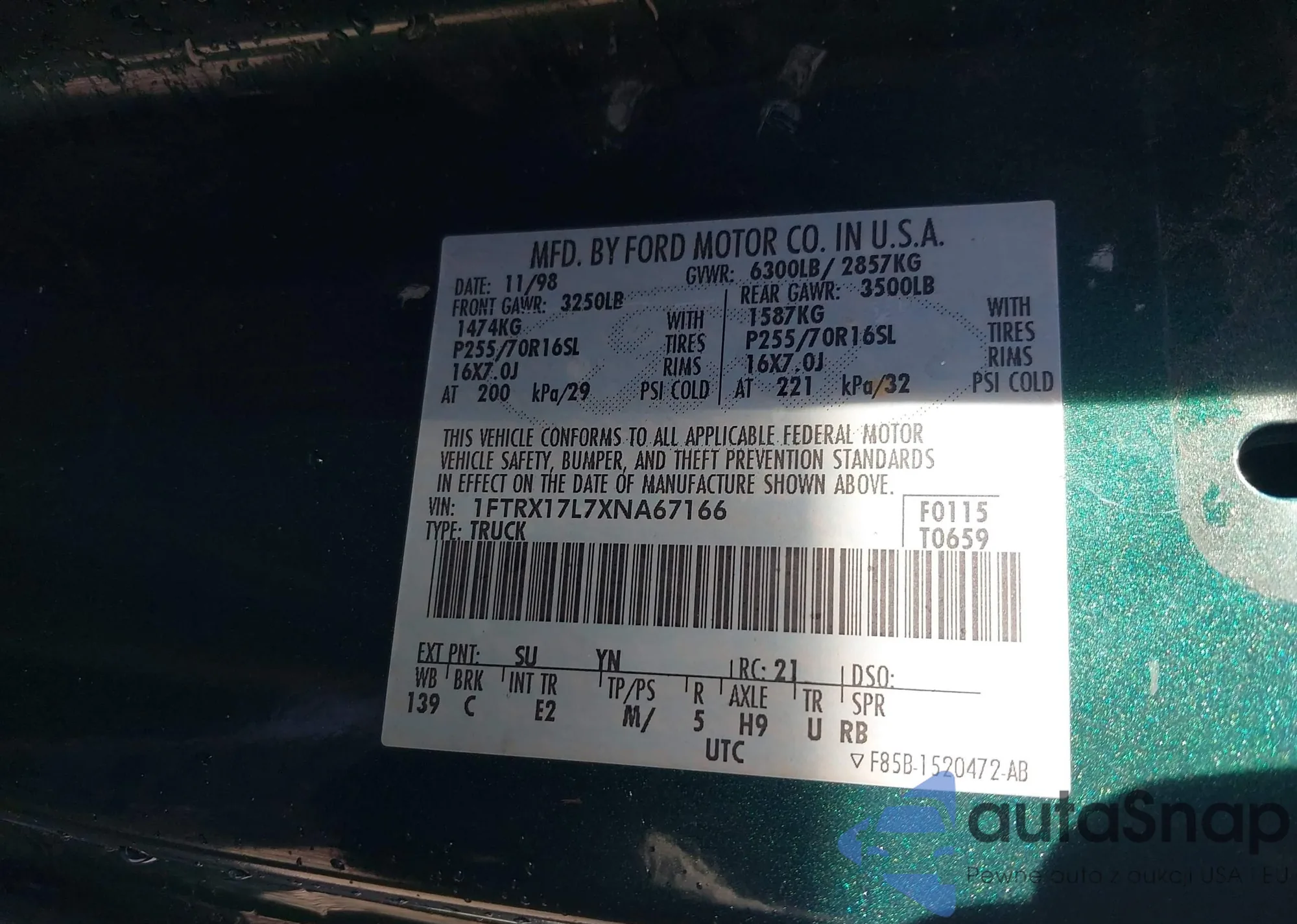 • VIN 1FTRX17L7XNA67166