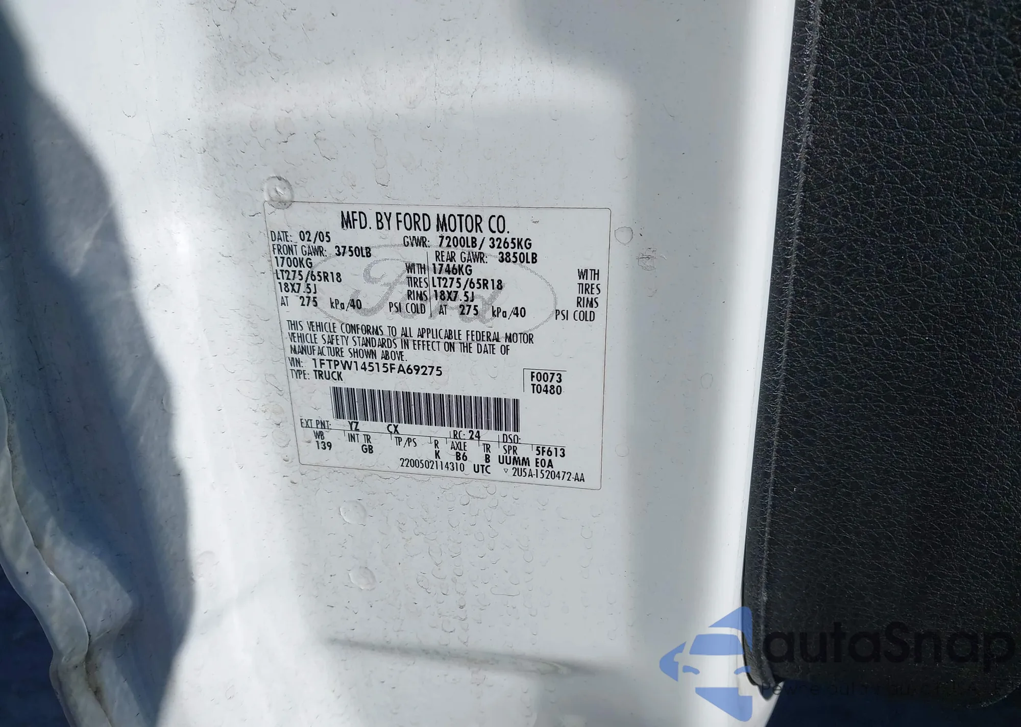 LOT: 44325980 VIN: 1FTPW14515FA69275