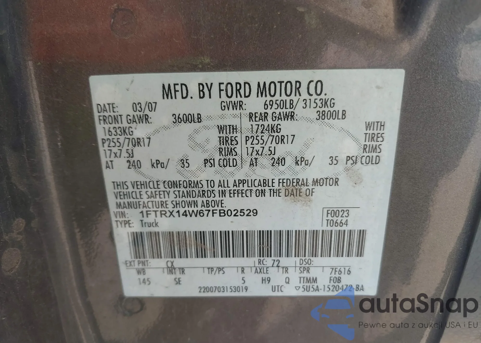 • VIN 1FTRX14W67FB02529