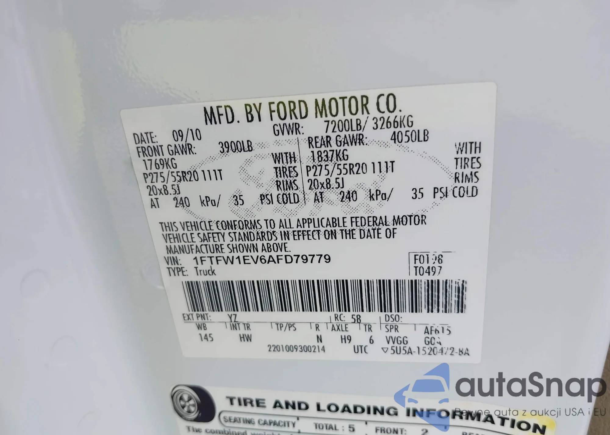 • VIN 1FTFW1EV6AFD79779