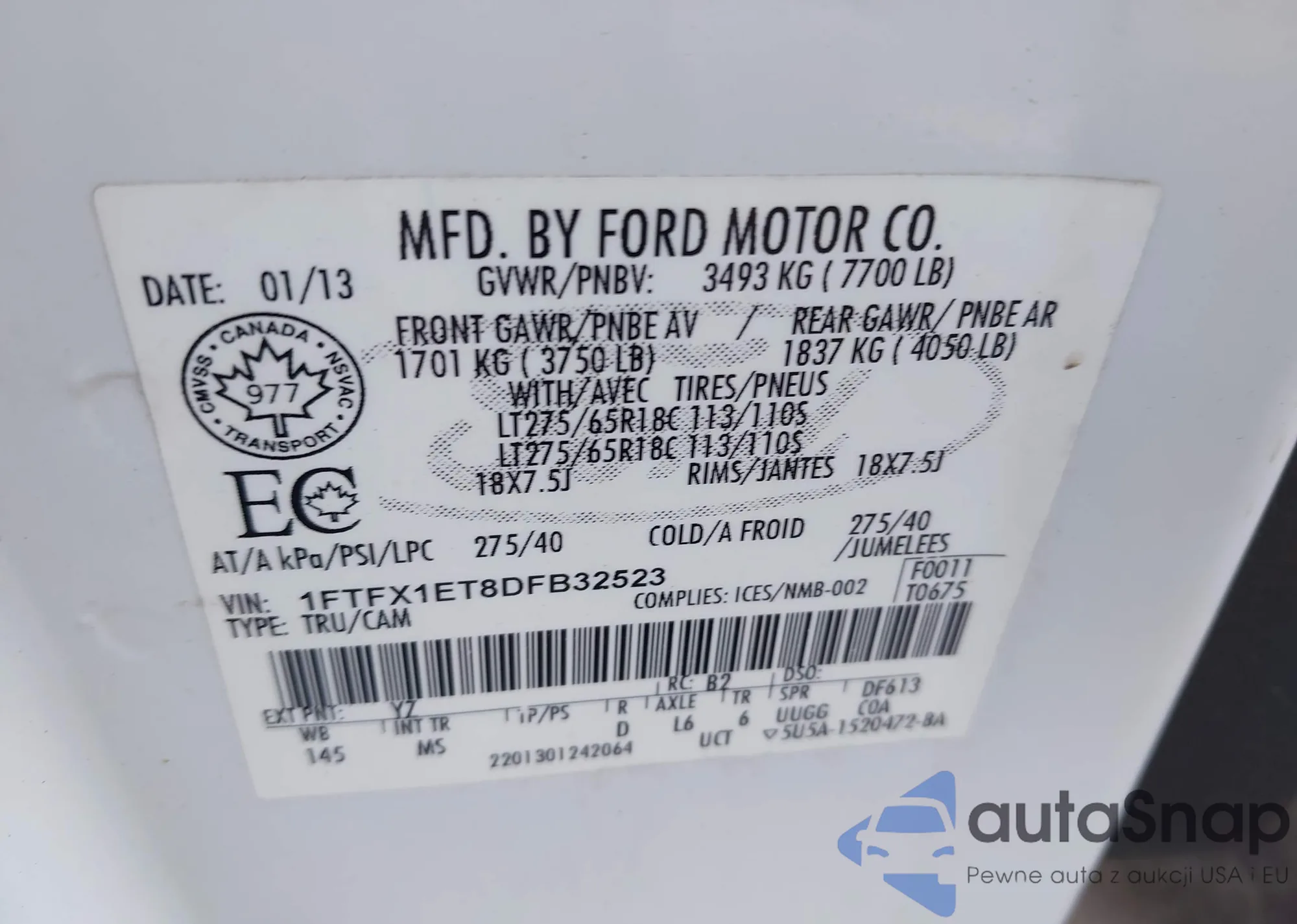 • VIN 1FTFX1ET8DFB32523
