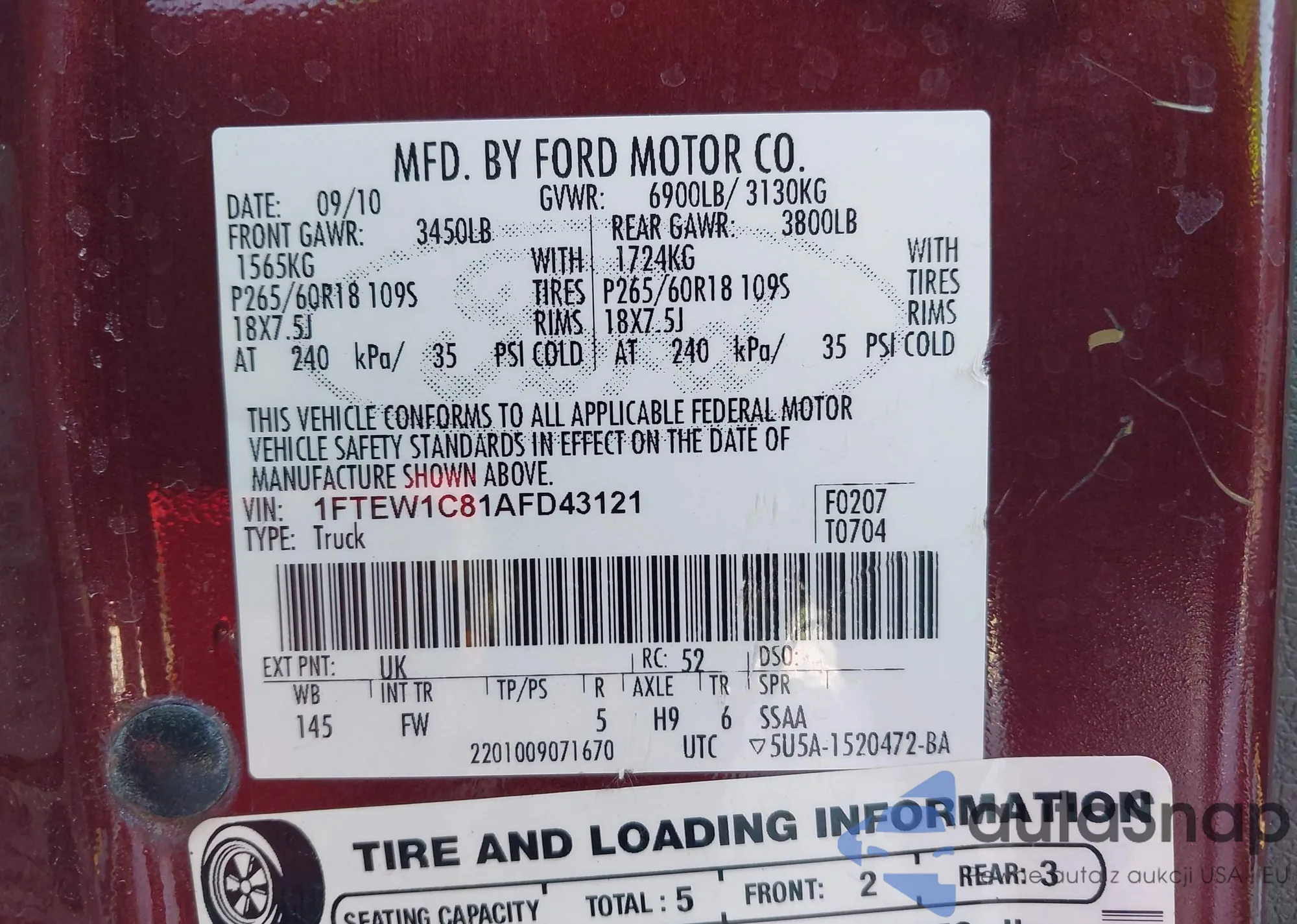 • VIN 1FTEW1C81AFD43121