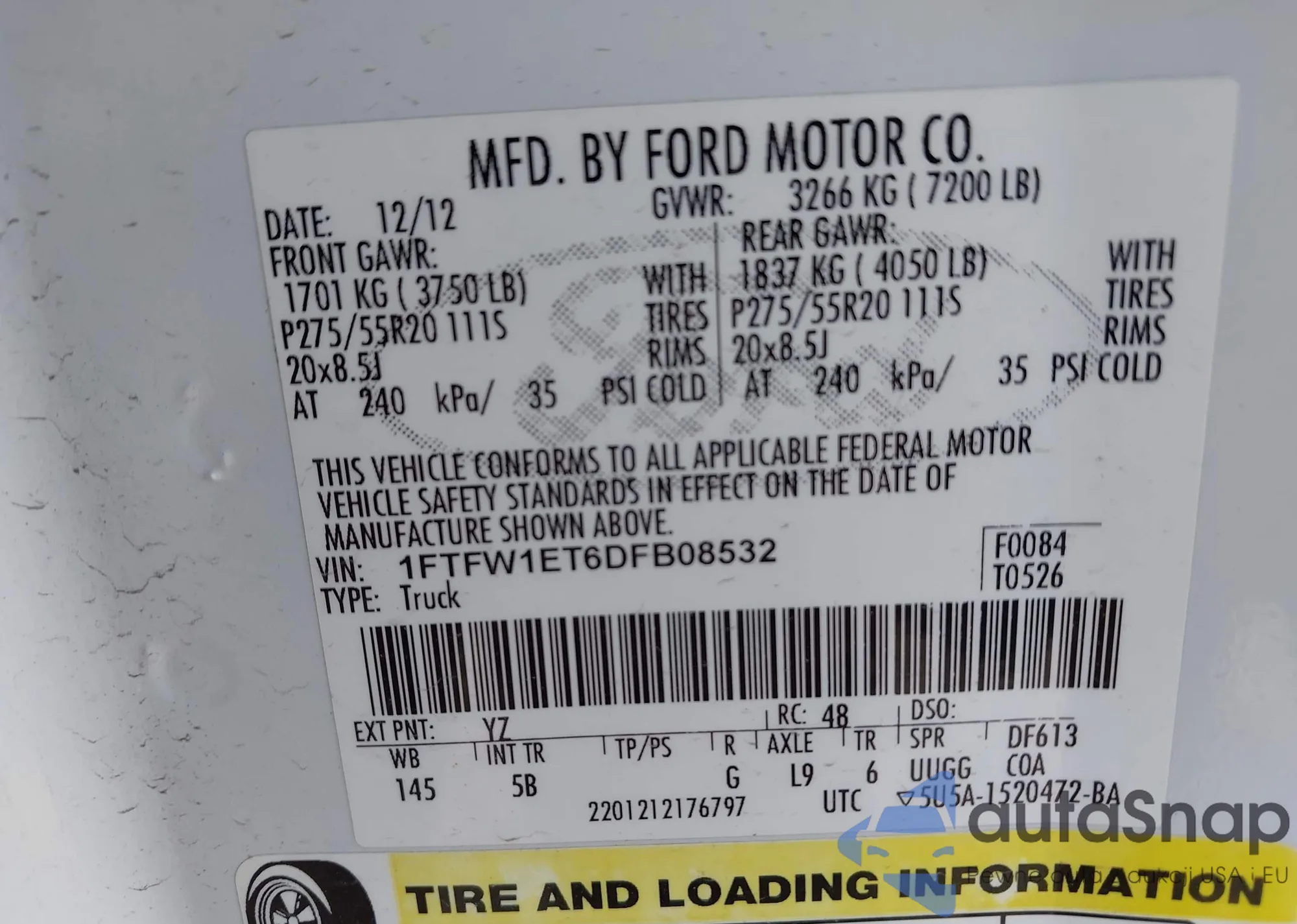 • VIN 1FTFW1ET6DFB08532