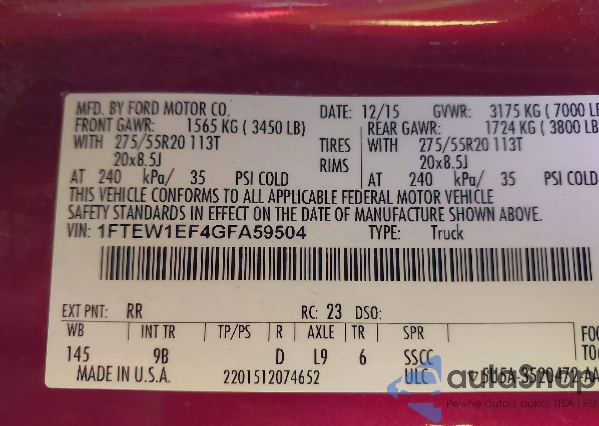 • VIN 1FTEW1EF4GFA59504