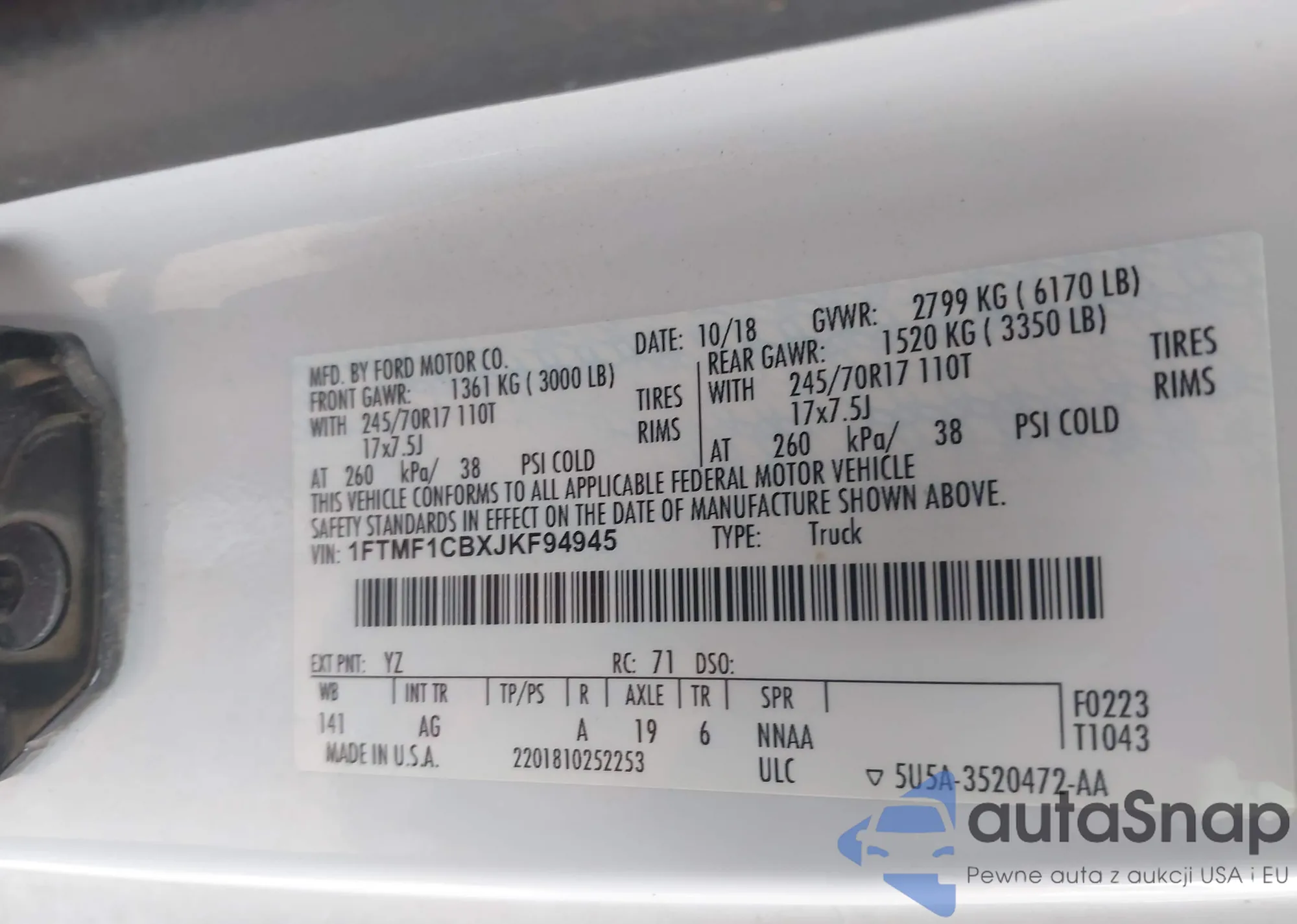 LOT: 44019717 VIN: 1FTMF1CBXJKF94945