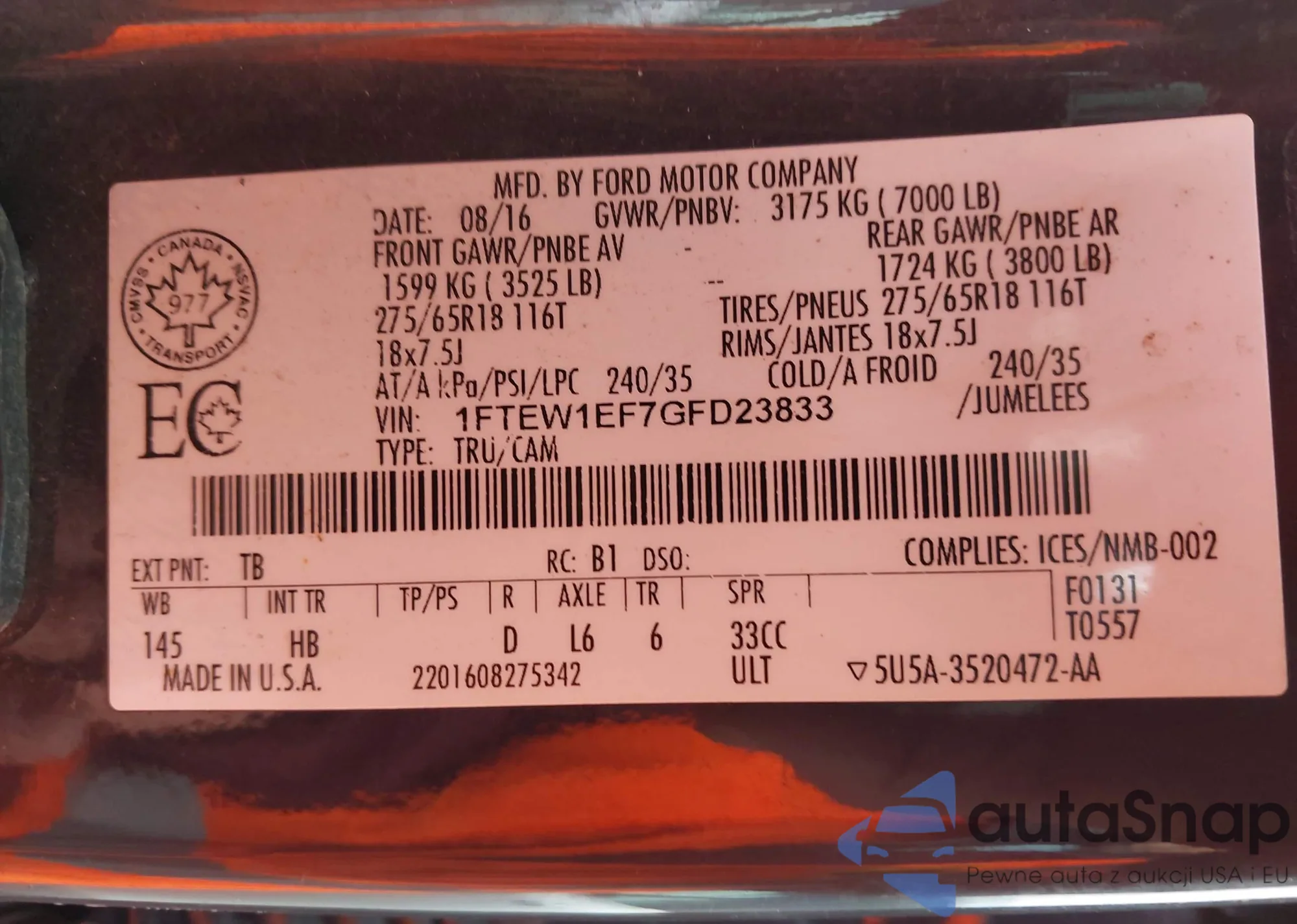 • VIN 1FTEW1EF7GFD23833