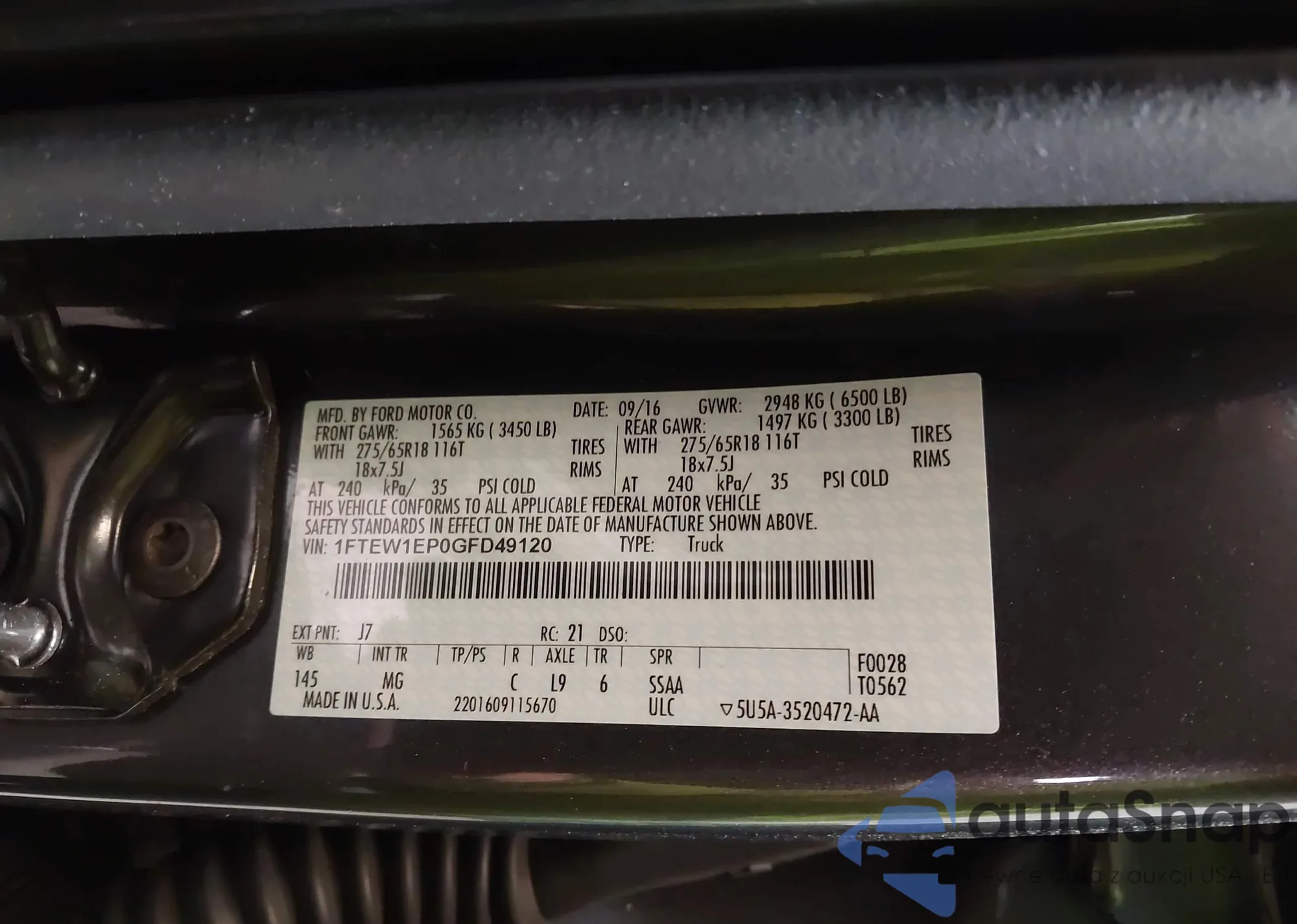 • VIN 1FTEW1EP0GFD49120