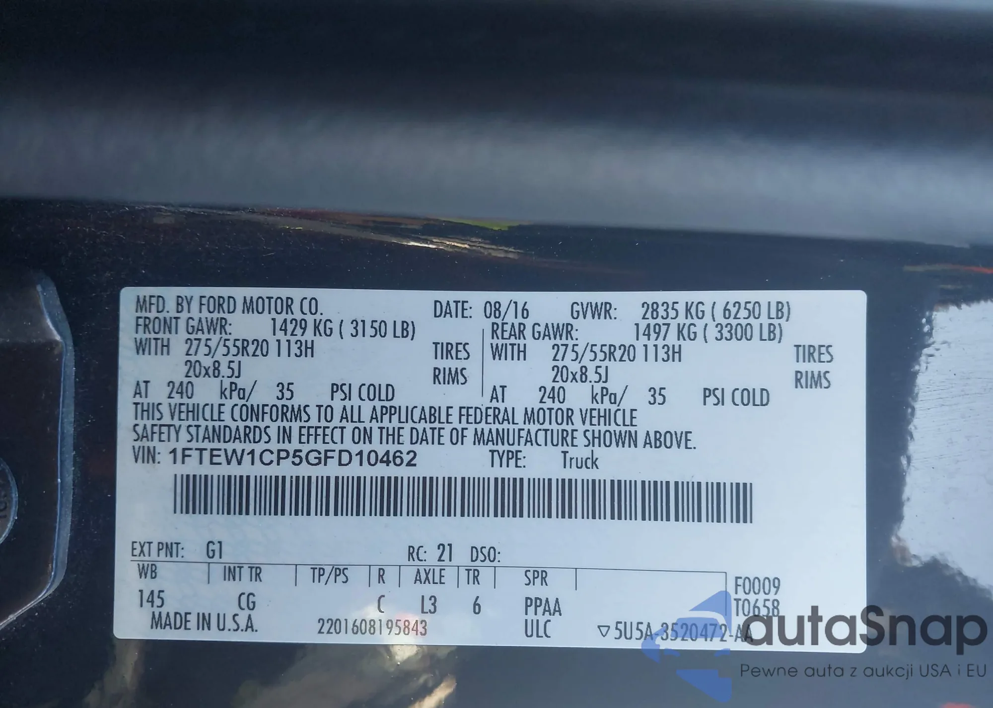 • VIN 1FTEW1CP5GFD10462