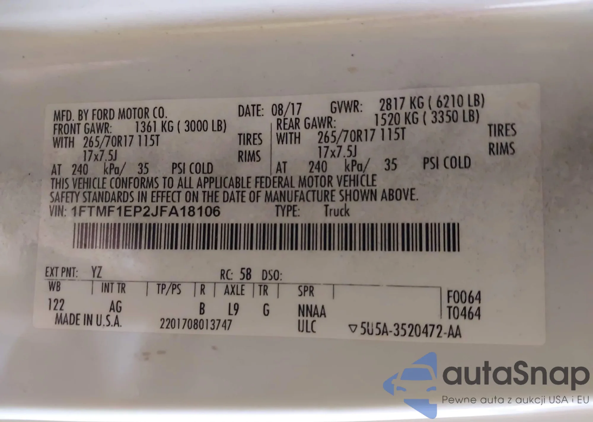 LOT: 44115014 VIN: 1FTMF1EP2JFA18106