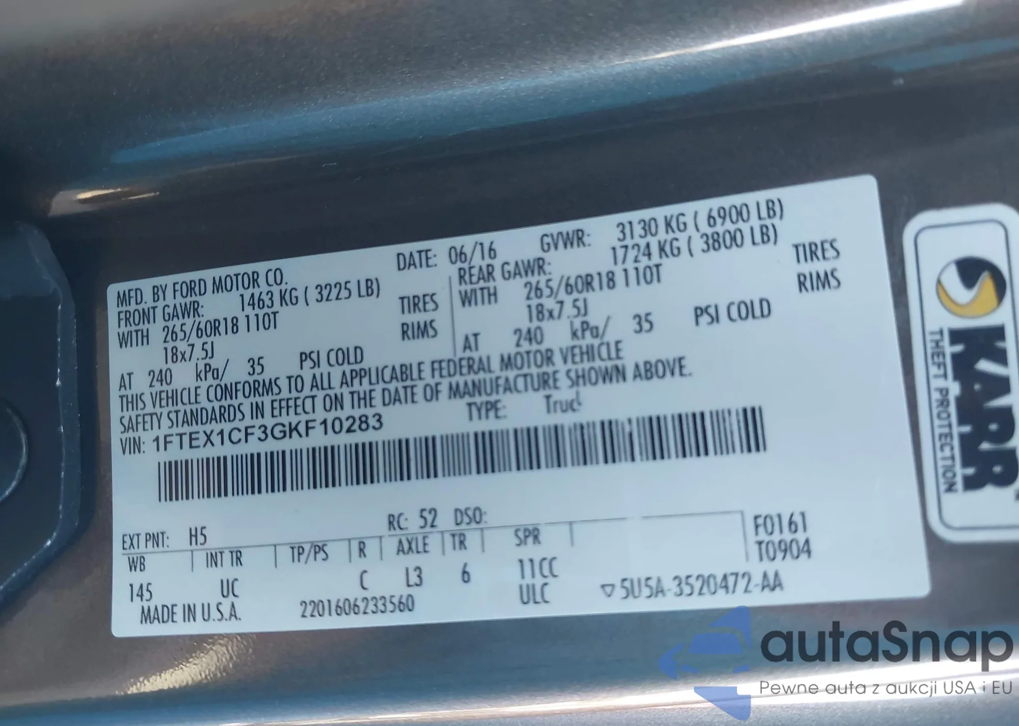 LOT: 43836173 VIN: 1FTEX1CF3GKF10283