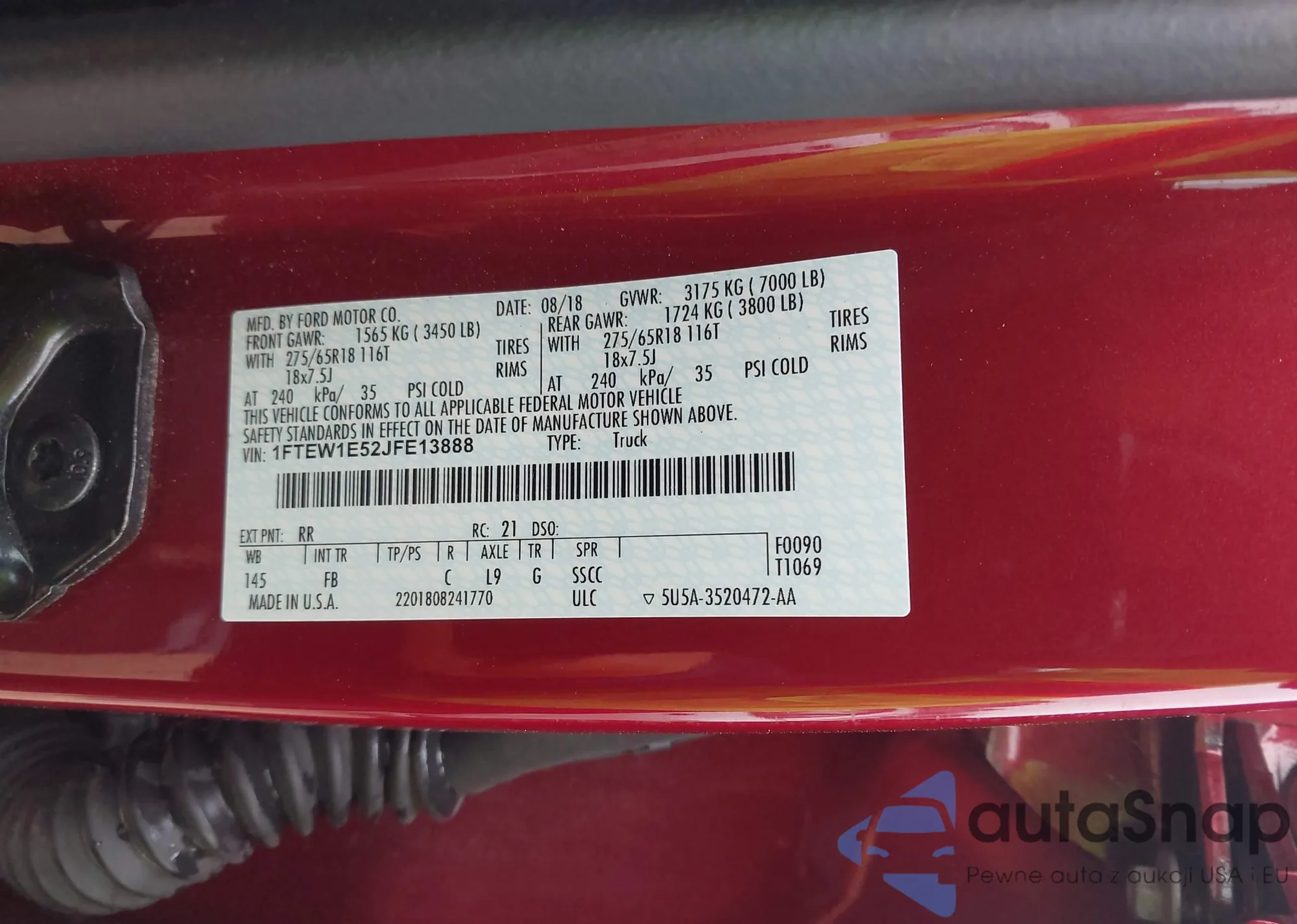LOT: 44125234 VIN: 1FTEW1E52JFE13888