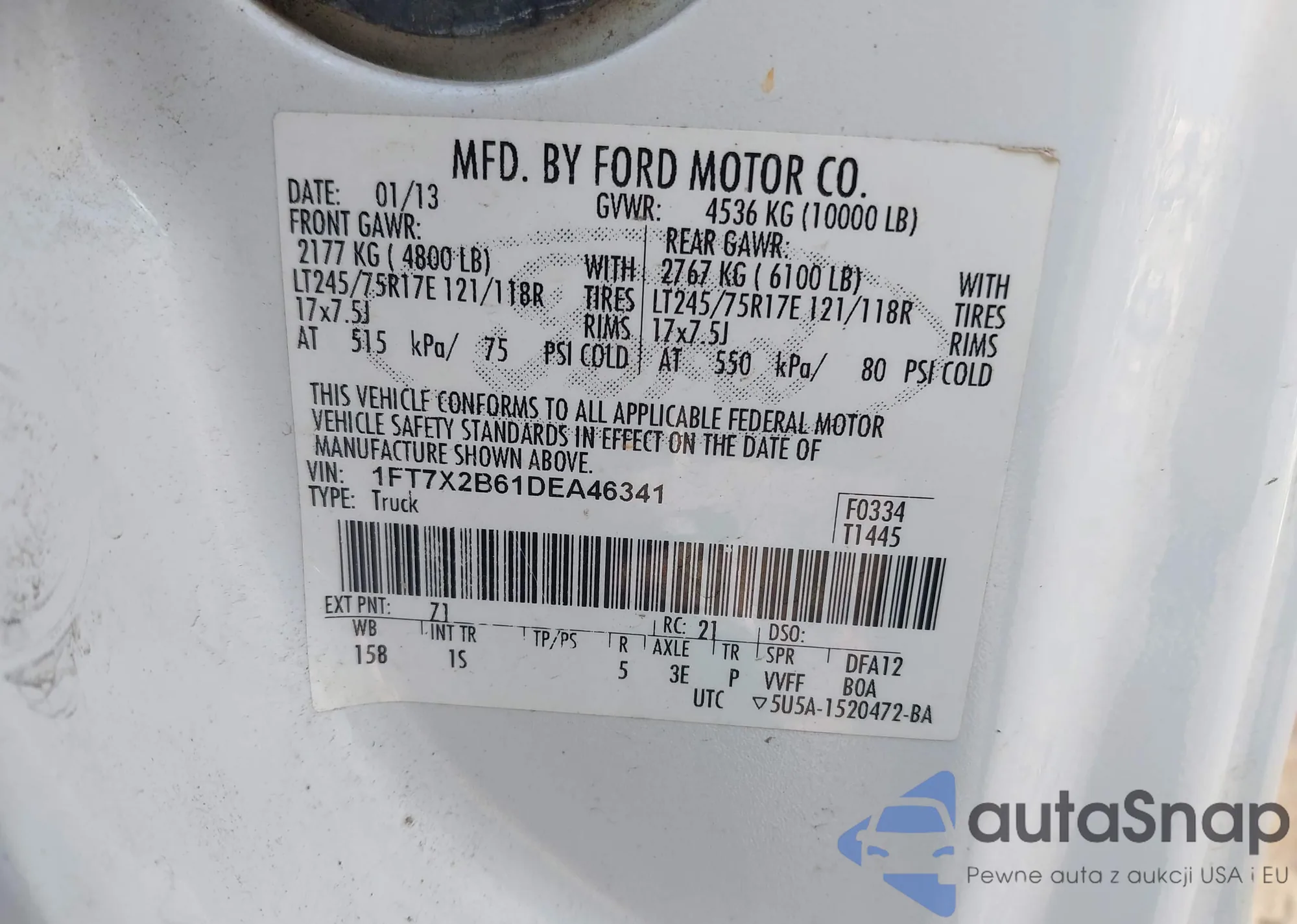 • VIN 1FT7X2B61DEA46341