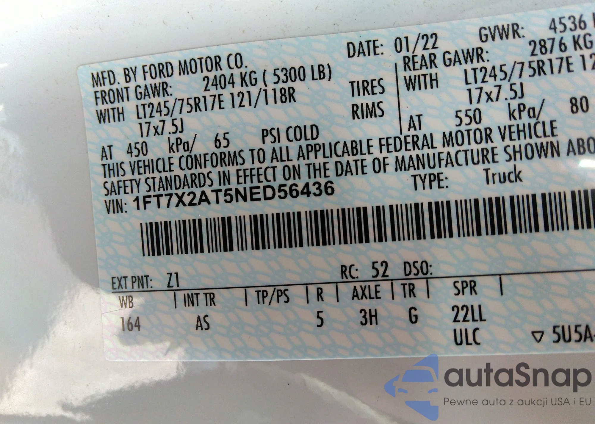 • VIN 1FT7X2AT5NED56436