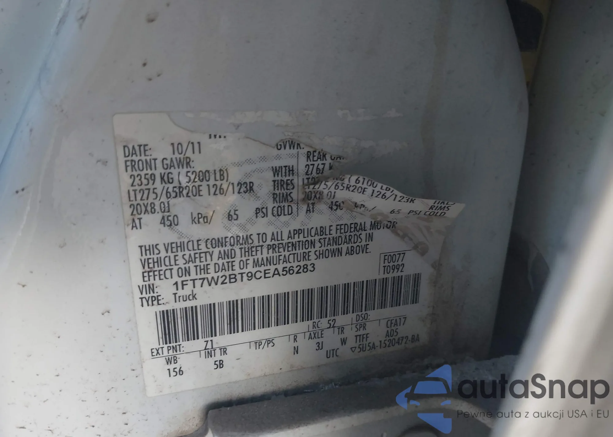 LOT: 44067062 VIN: 1FT7W2BT9CEA56283