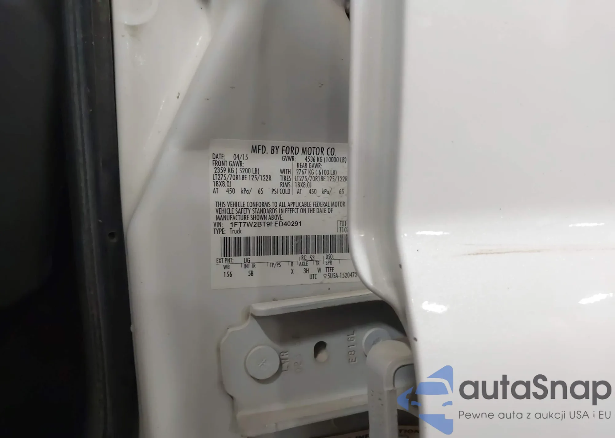 • VIN 1FT7W2BT9FED40291
