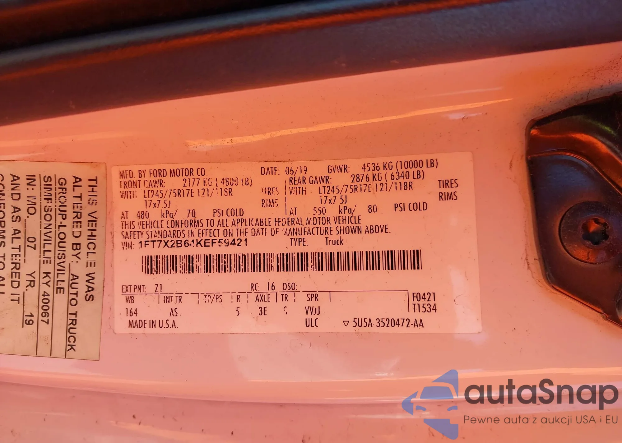 • VIN 1FT7X2B64KEF59421