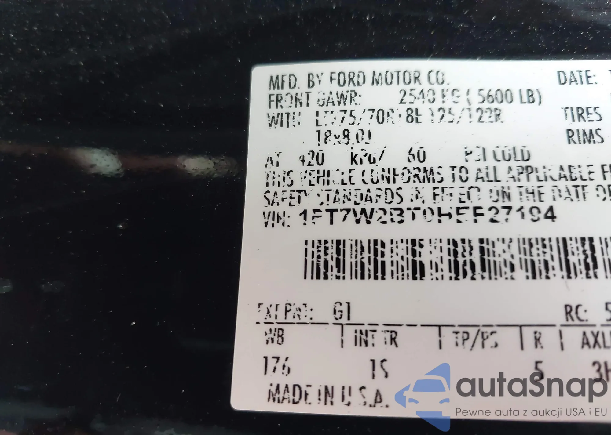 • VIN 1FT7W2BT0HEF27194