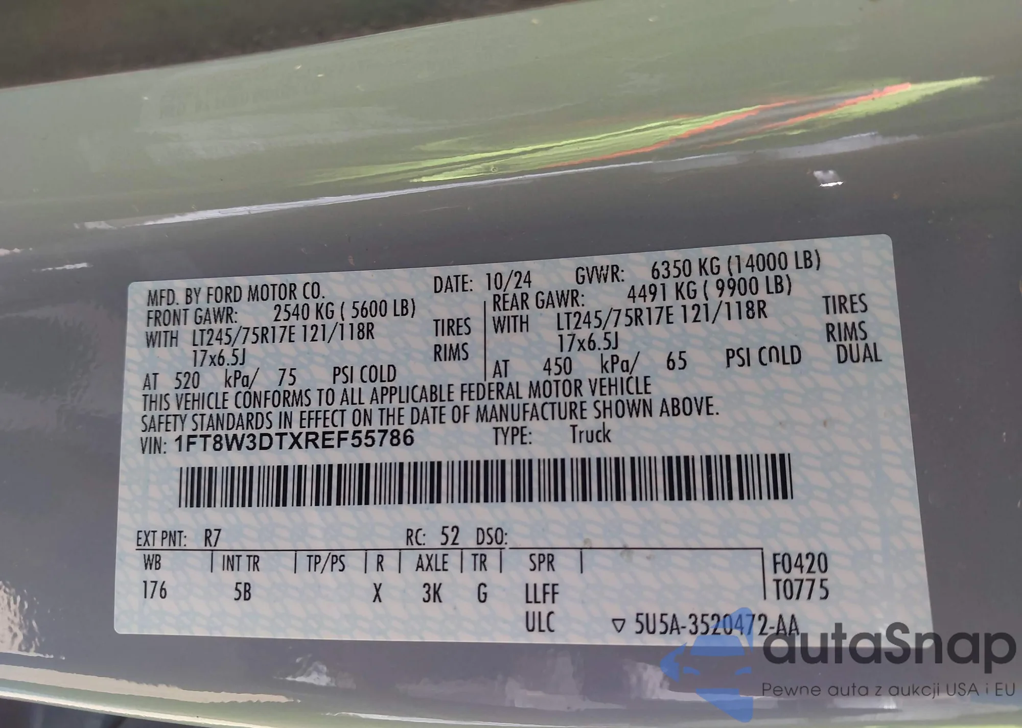 LOT: 43658712 VIN: 1FT8W3DTXREF55786