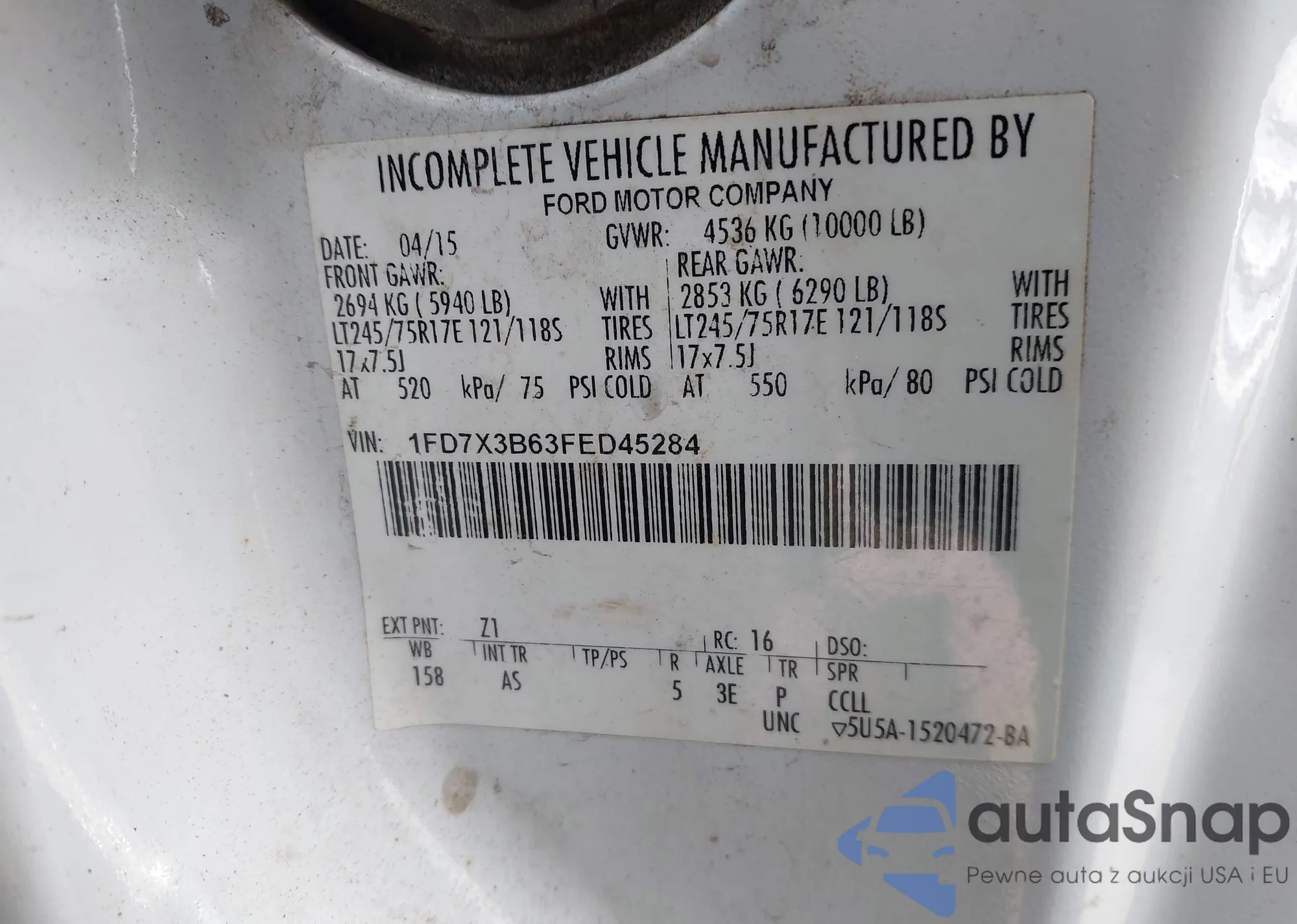 • VIN 1FD7X3B63FED45284
